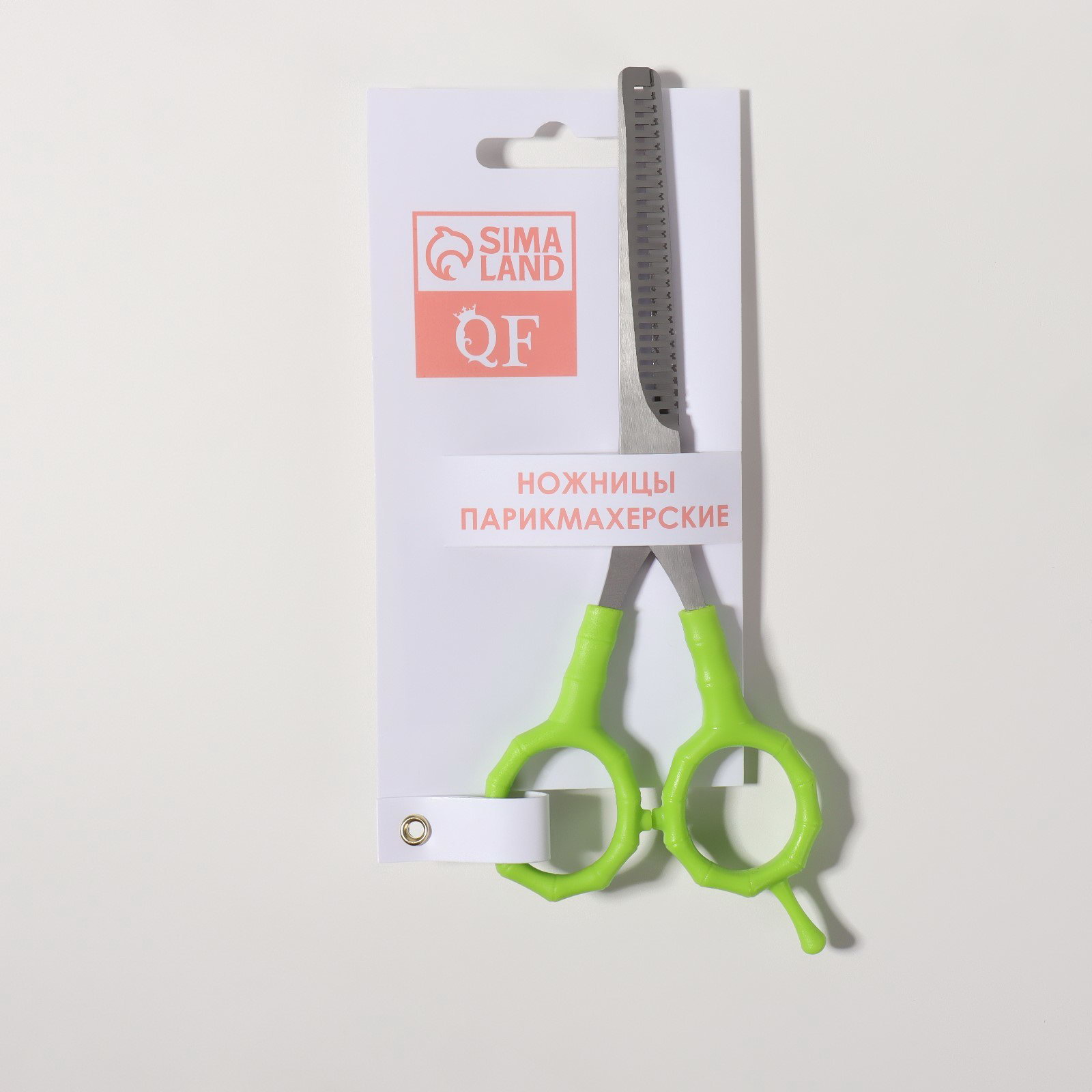 Ножницы филировочные с упором, лезвие 7 см, салатовые, серебристые, 6.5x16.5x0.7 см., QF, Китай