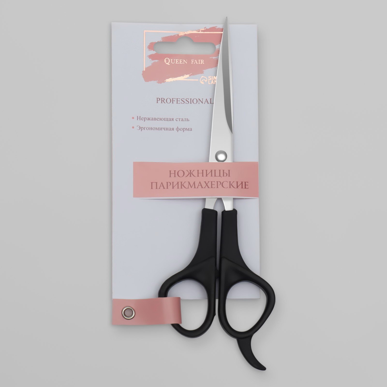 Ножницы парикмахерские с упором, лезвие 6 см, чёрные, серебристые, 6.5x16.5x7 см., QF, Китай