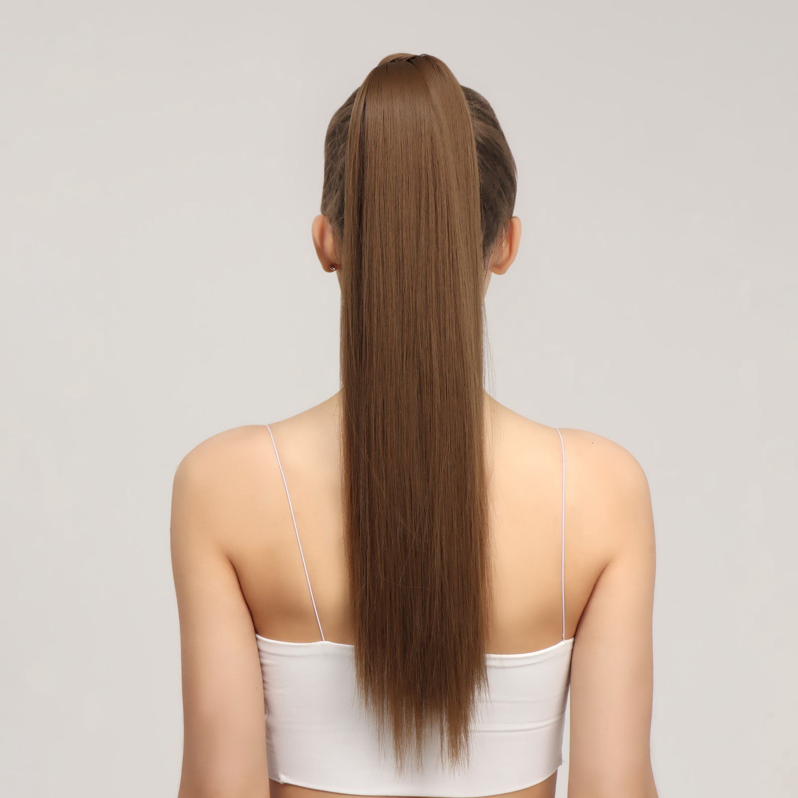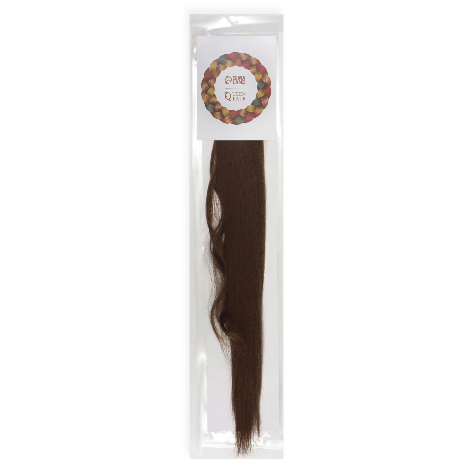 Хвост накладной, прямой волос, на резинке, 60 см, 100 гр, цвет русый, 15.5x60x4.5 см., QF, Китай