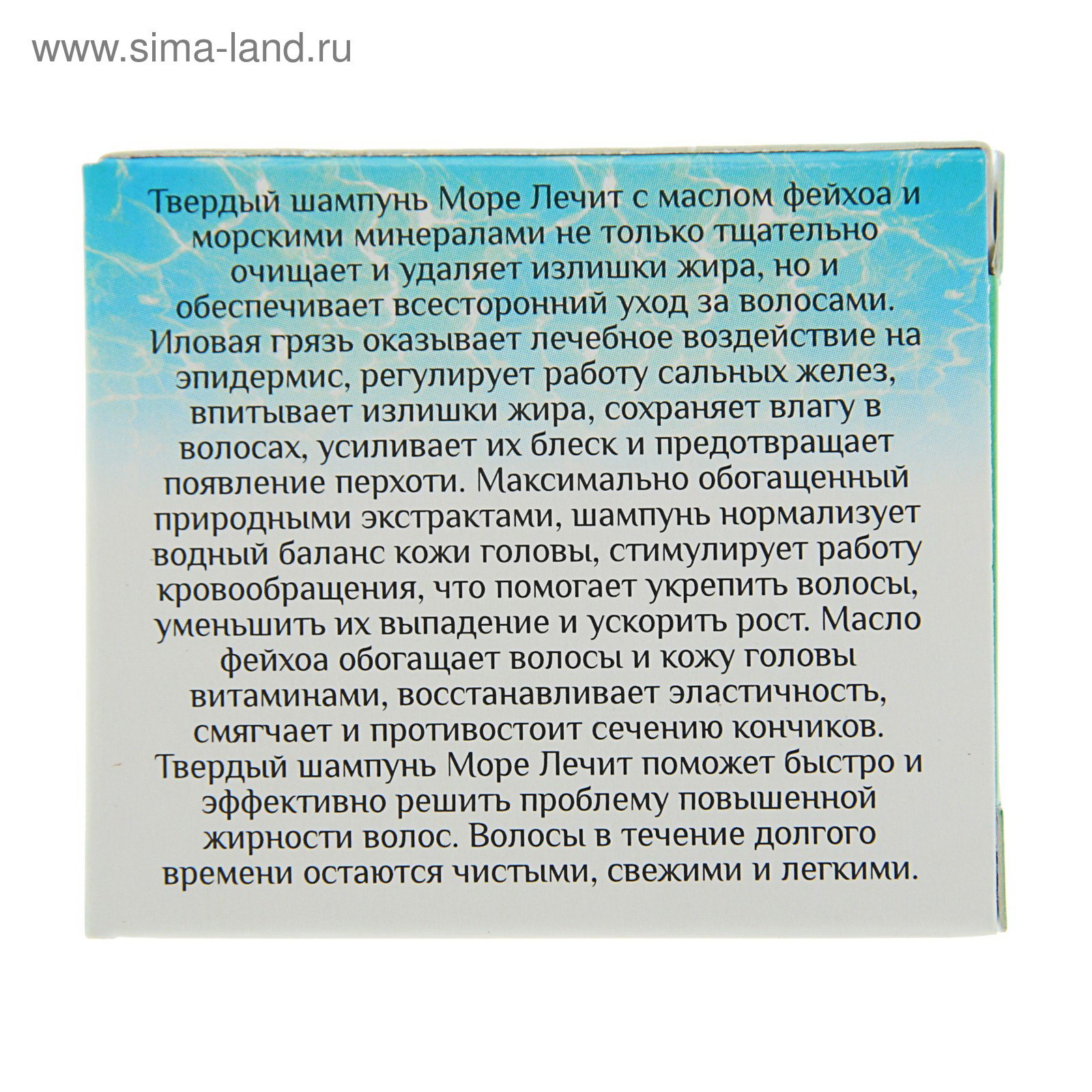 Размер упаковки: 5 x 2.5 x 5.5 см. Вид: Шампунь tnved: 3304990000 Аромат: Фейхоа Для кого: Для мужчины Тип волос: Жирные Эффект: Питание Вид шампуня: Твёрдый Твёрдый шампунь "Море лечит" содержит масло фейхоа и морские минералы. Поможет быстро решить проблему повышенной жирности волос. Пряди в течение долгого времени будут оставаться чистыми, свежими и лёгкими. Шампунь обогащён природными экстрактами, нормализует водный баланс кожи головы, улучшает кровообращение. Средство помогает укрепить волосы, уменьшить их выпадение и ускорить рост. Действие активных ингредиентов:
