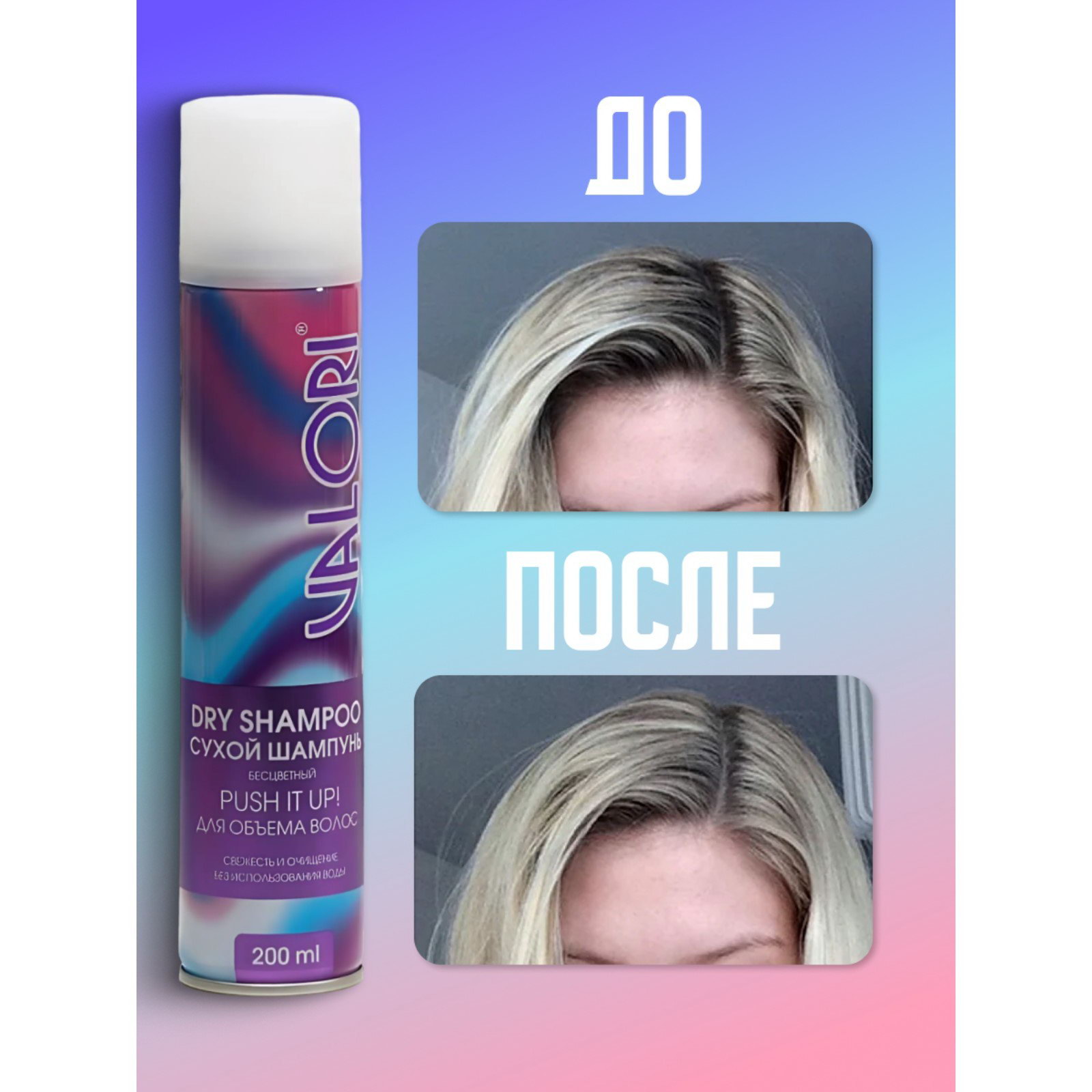 Сухой шампунь для волос для объема волос, Push It Up, 200 мл, 200 мл., Valori, Франция