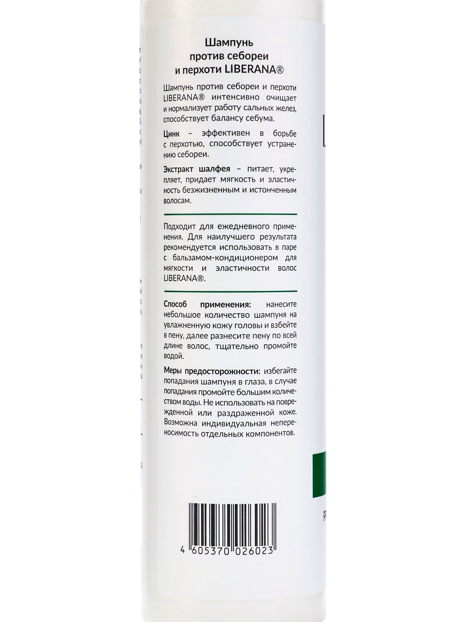Шампунь против себореи и перхоти, 250 мл, 250 мл., Liberana, Россия