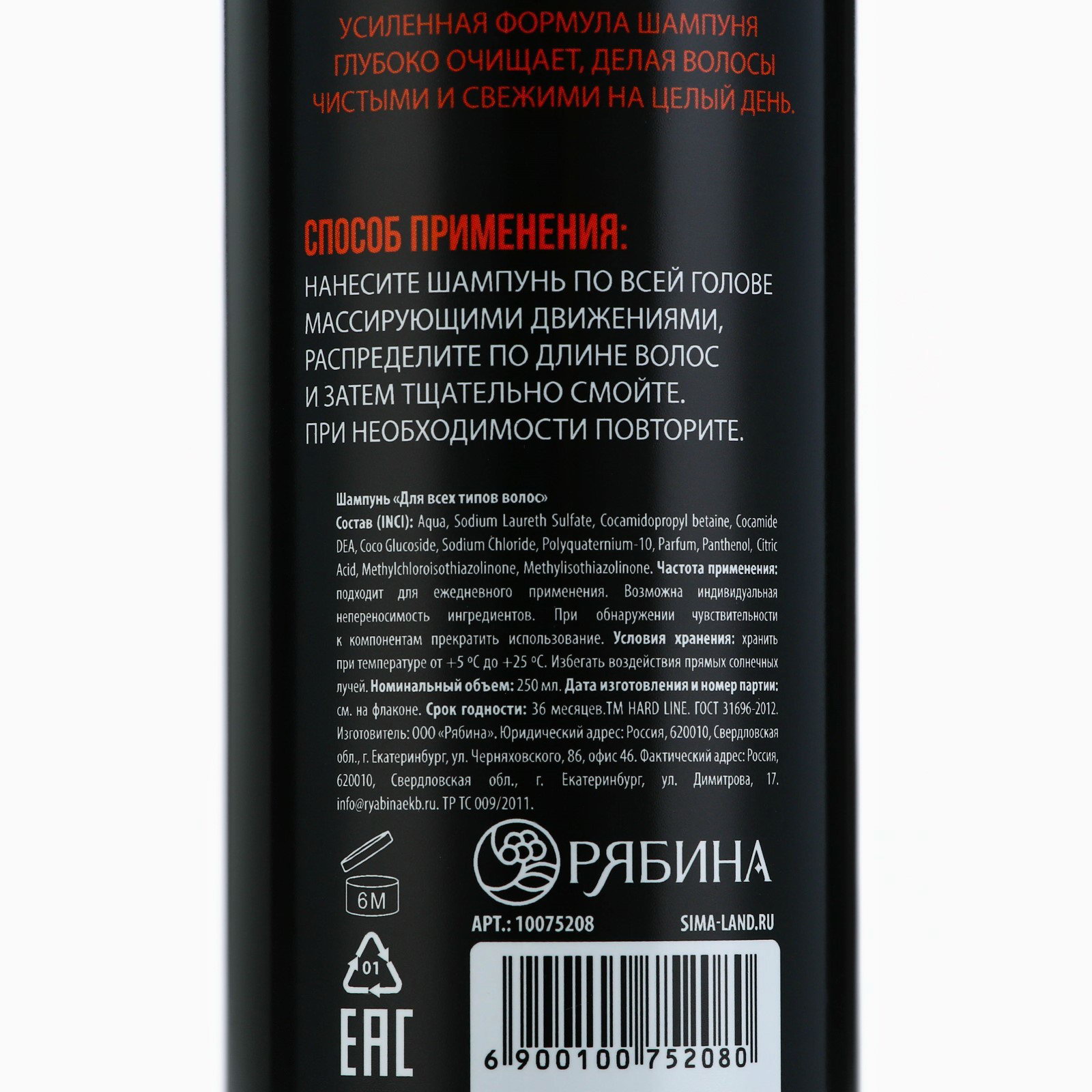 Шампунь для волос и бороды 2в1, 250 мл, 250 мл., HARD LINE, Россия