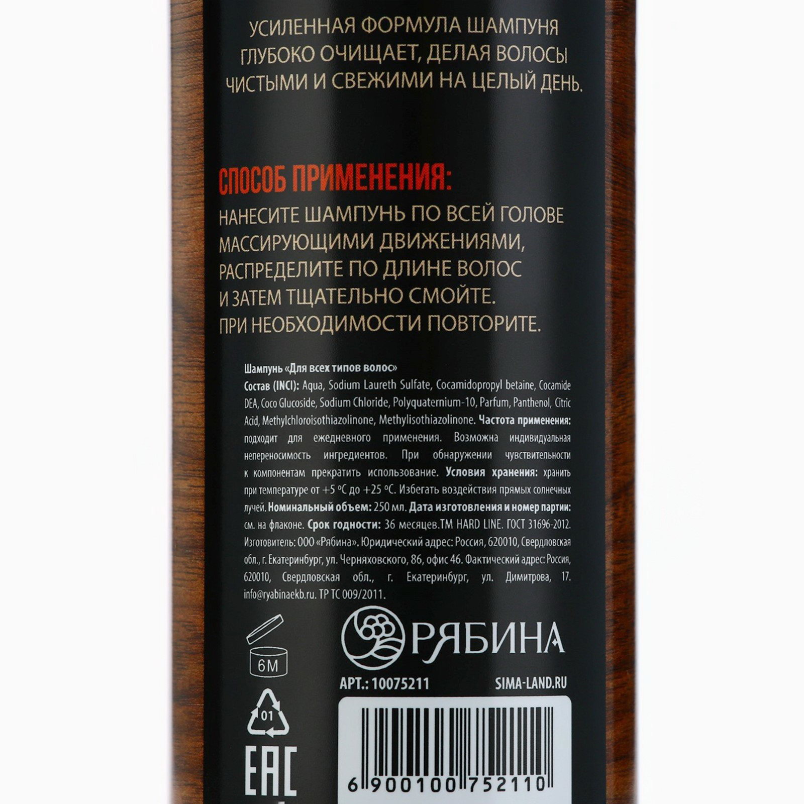 Шампунь для волос и бороды 2 в 1, 250 мл, 250 мл., HARD LINE, Россия