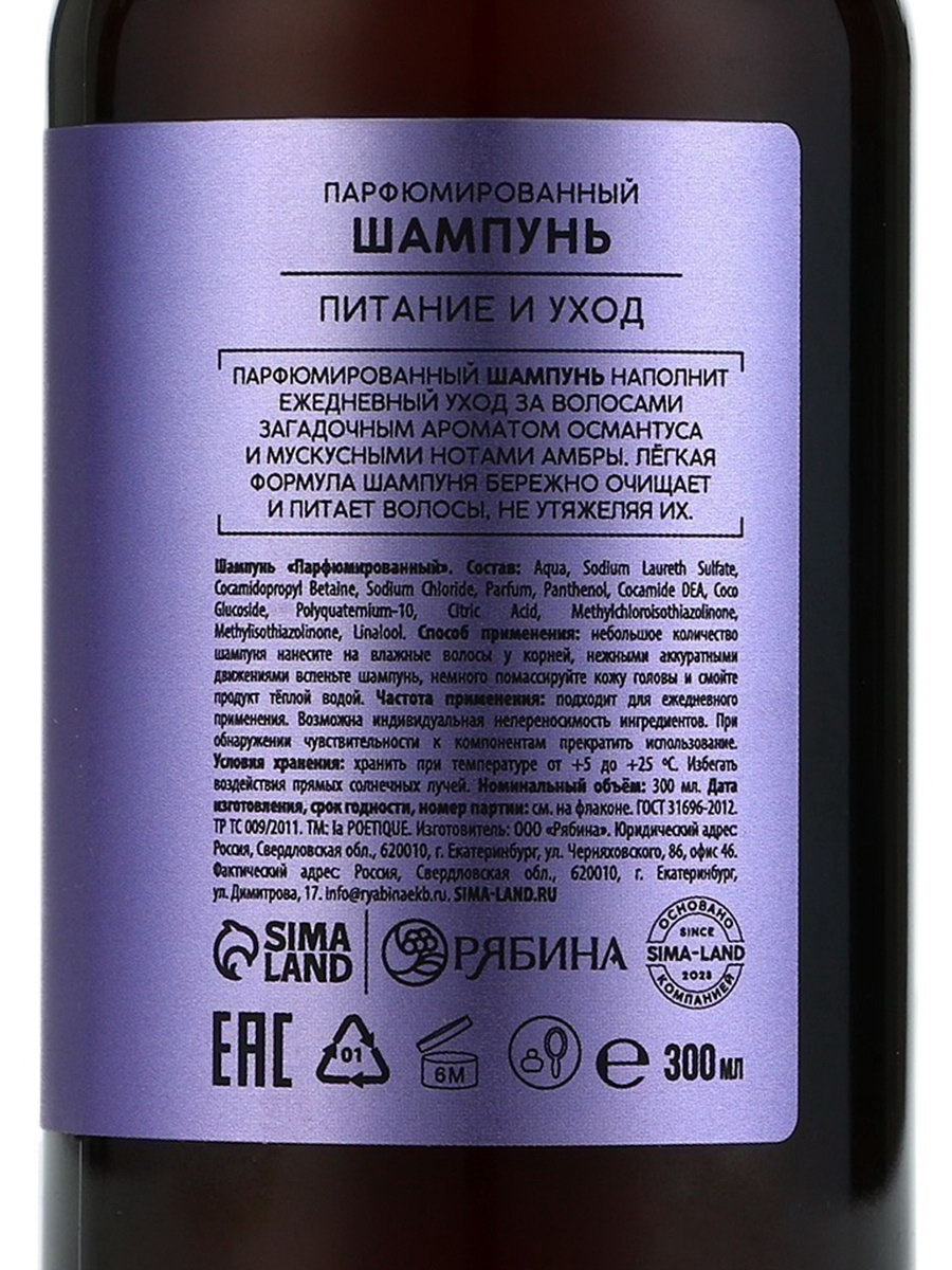 Шампунь для волос, питание и уход, 300 мл, аромат османтуса и амбры, LA POETIQUE, 300 мл., laPOETIQUE, Россия