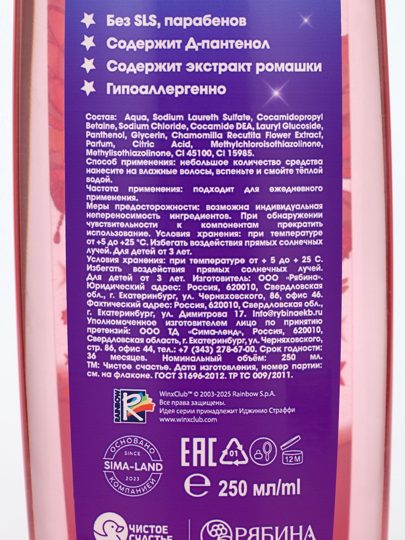 Шампунь детский, 250 мл, аромат тутти-фрутти, ВИНКС, 250 мл., WINX, Россия