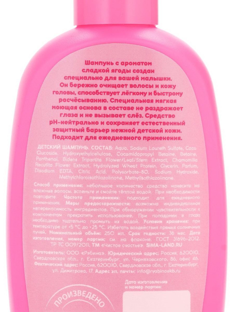 Шампунь детский для девочек, аромат сладкой ягоды, 250 мл, 250 мл., Чистое счастье, Россия