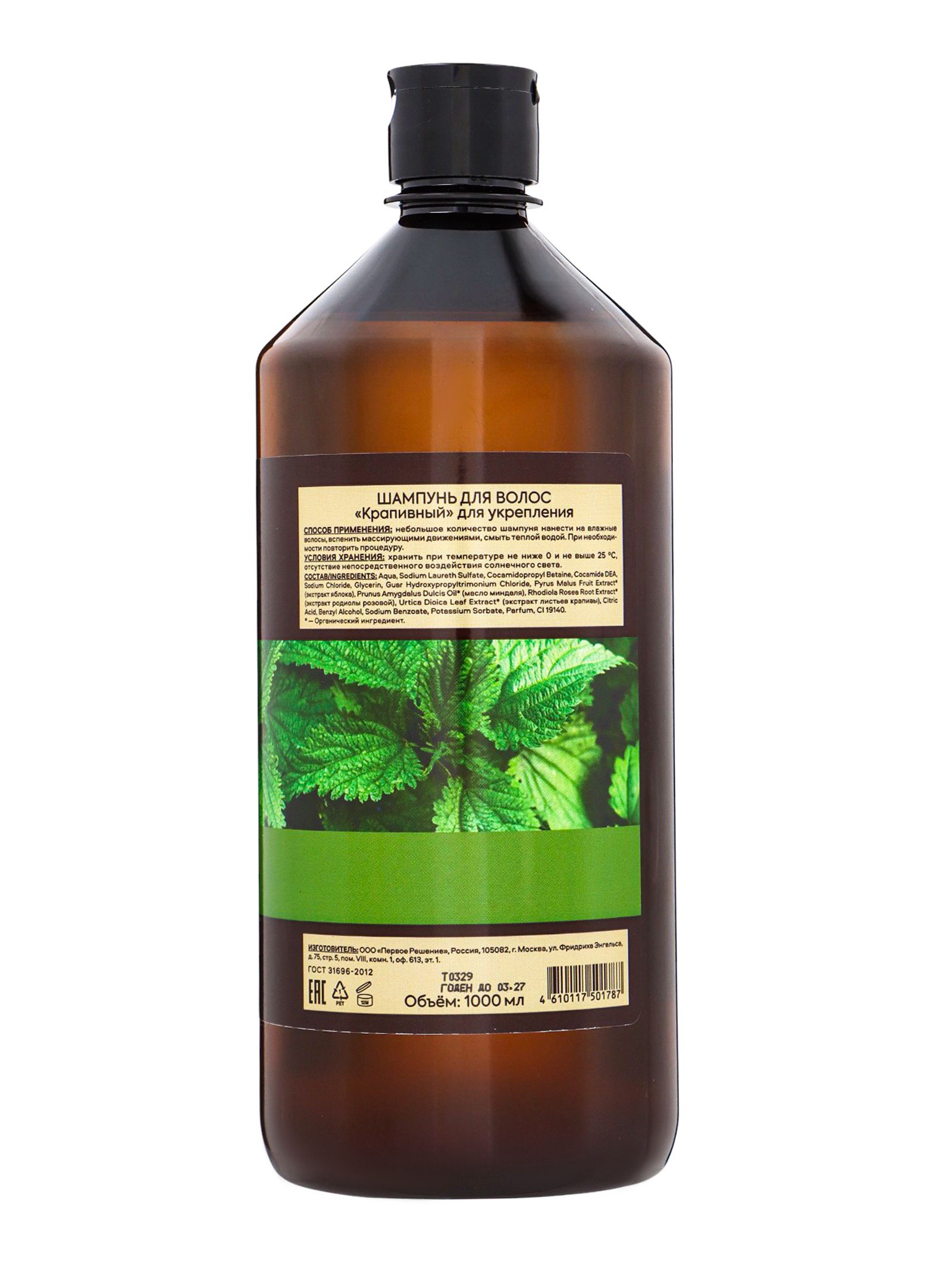 Шампунь "Народная косметика № 1", для укрепления волос, крапивный, 1000 мл, 1000 мл., ПЕРВОЕ РЕШЕНИЕ, Россия