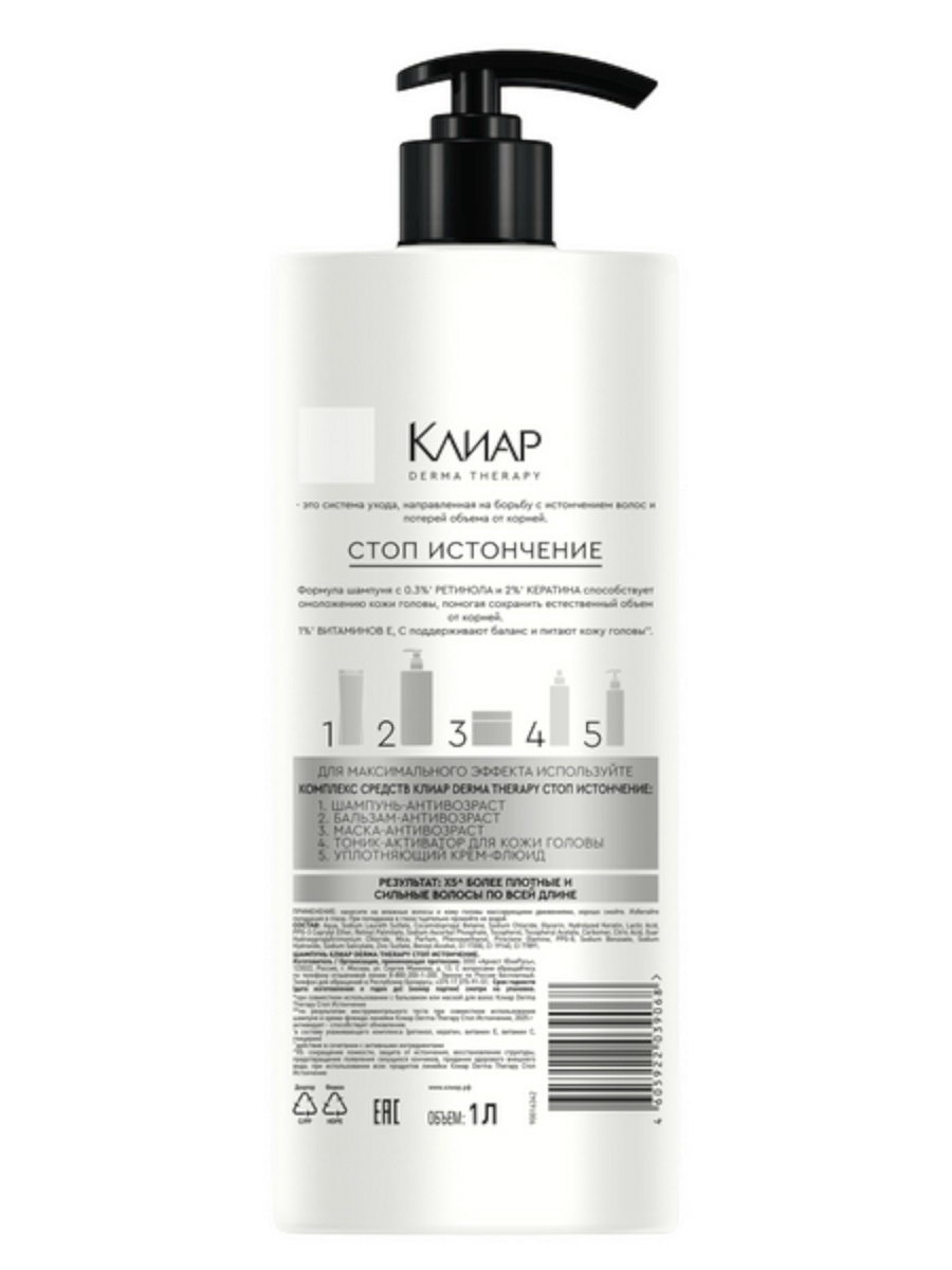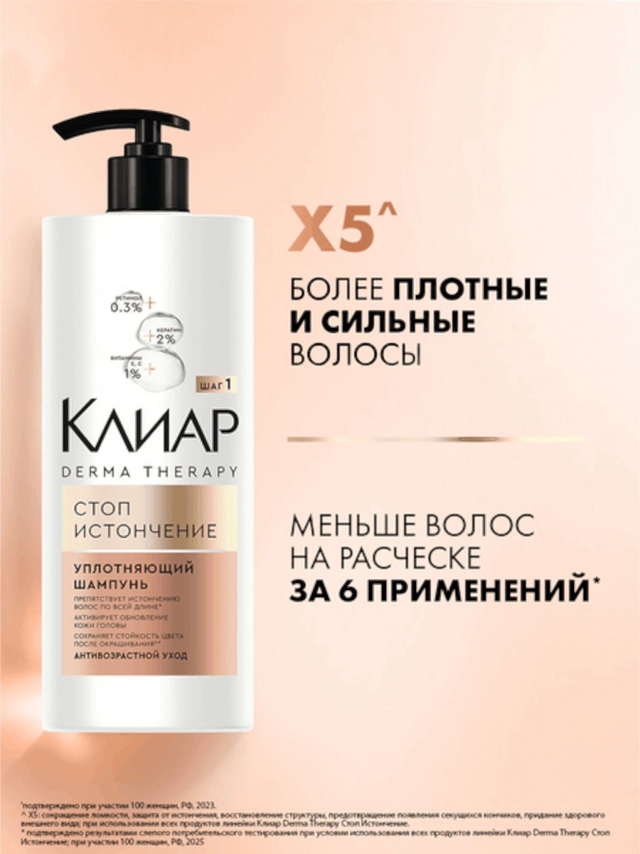 Шампунь для волос "Клиар", уплотняющий, стоп-истончение, 1000 мл, 1000 мл., Clear, Россия