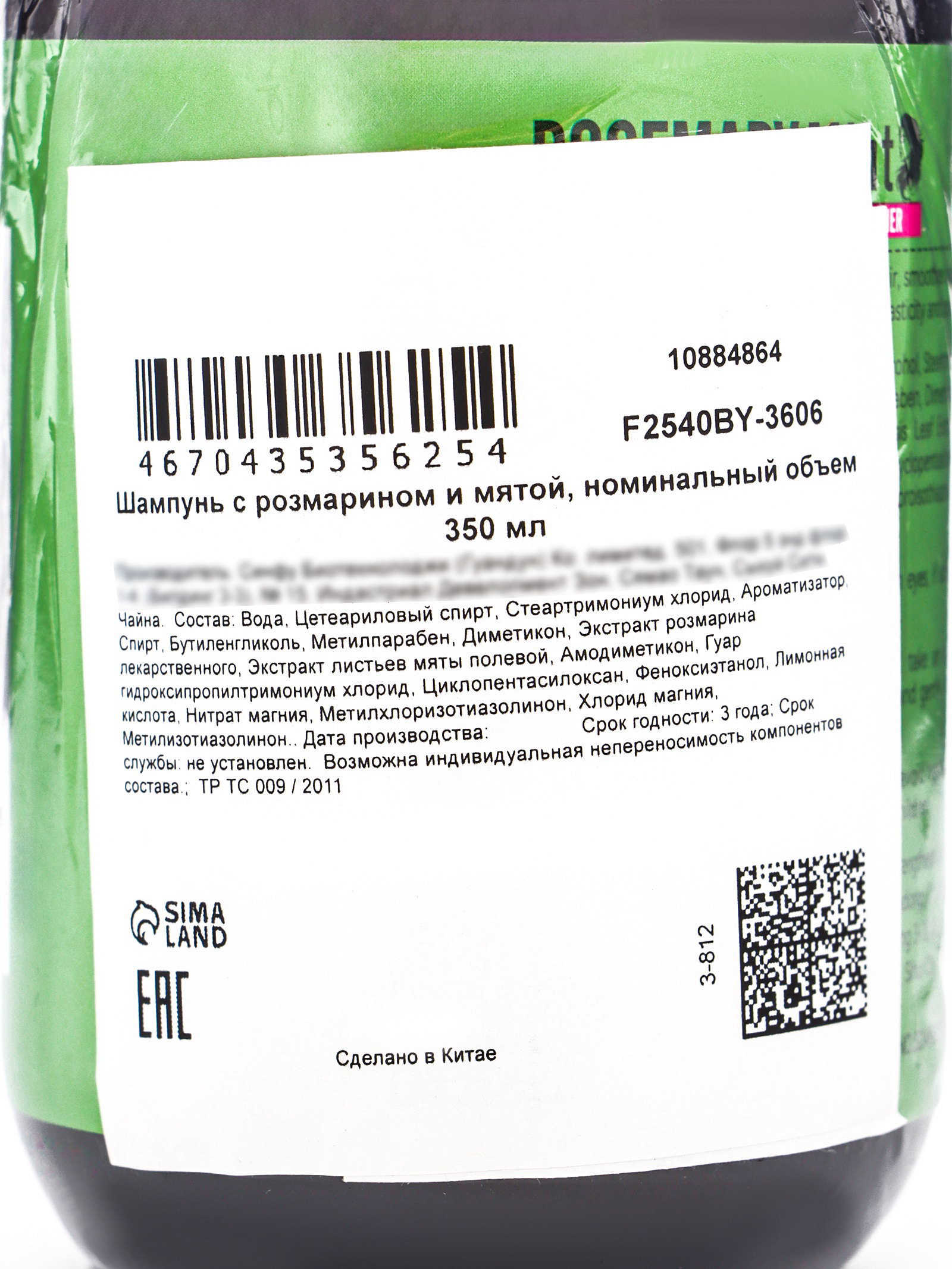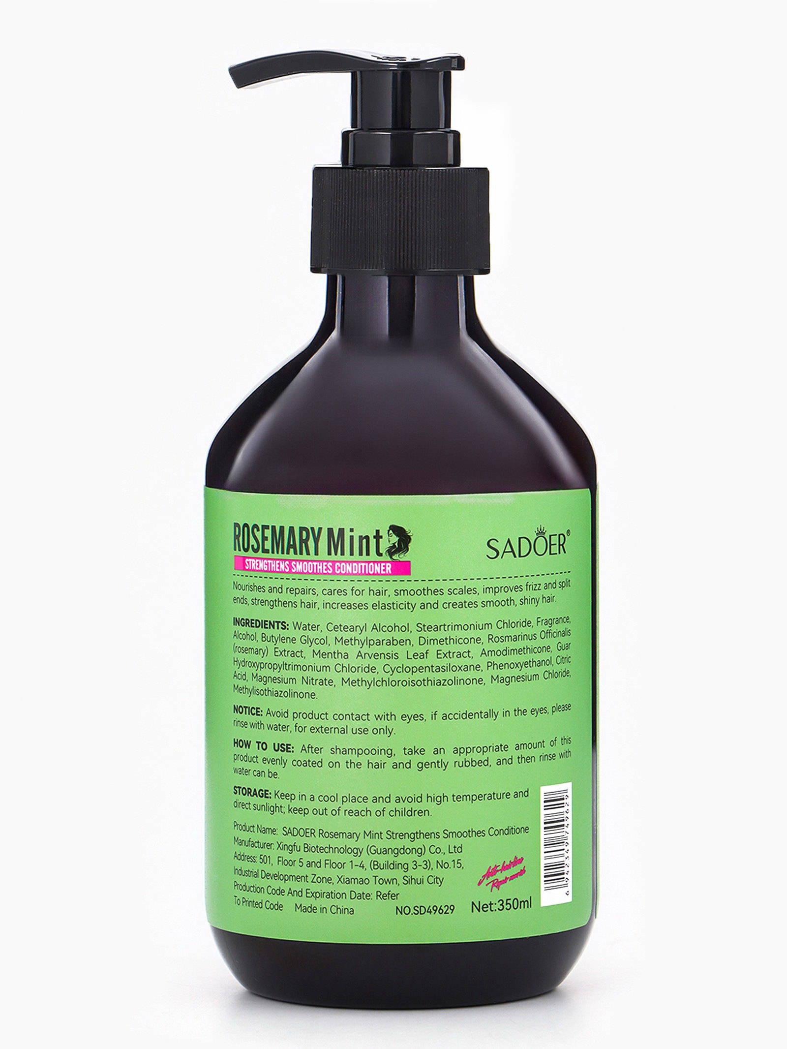 Шампунь с розмарином и мятой, 350 мл, 350 мл., SADOER, Китай
