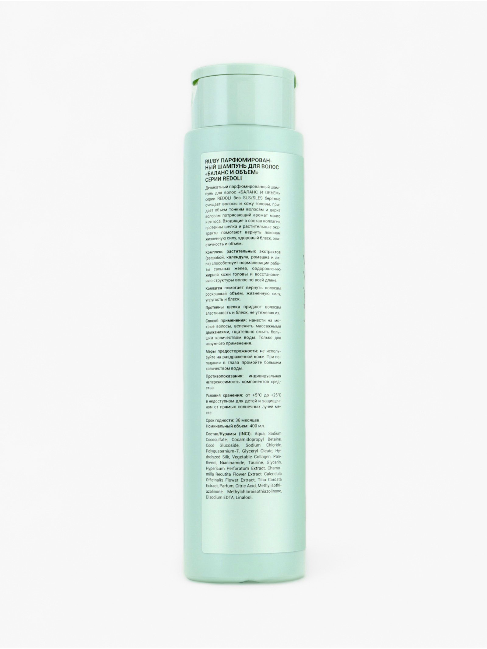 Аромат: Лотос, Манго Эффект: Защита от воздействия окр. среды, Объём Размер упаковки: 5 x 5 x 22.5 см. tnved: 3305100000 Температурное ограничение: Нет Температурное ограничение: Нет Вид шампуня: Жидкий Тип волос: Для всех типов Для кого: Для женщины Шампунь "Баланс и объем" серии REDOLI создан для бережного ухода за волосами без использования SLS/SLES. Средство мягко очищает волосы и кожу головы, придаёт объем тонким волосам и насыщает их ароматом манго и лотоса. Подходит для ежедневного применения, помогает восстановить жизненную силу и блеск волос, делая их эластичными и упругими. Коллаген и протеины шелка возвращают волосам упругость, эластичность и здоровый блеск, не утяжеляя их. Комплекс растительных экстрактов (зверобой, календула, ромашка и липа) нормализует работу сальных желез, оздоравливает кожу головы и восстанавливает структуру волос по всей длине. Активные ингредиенты: