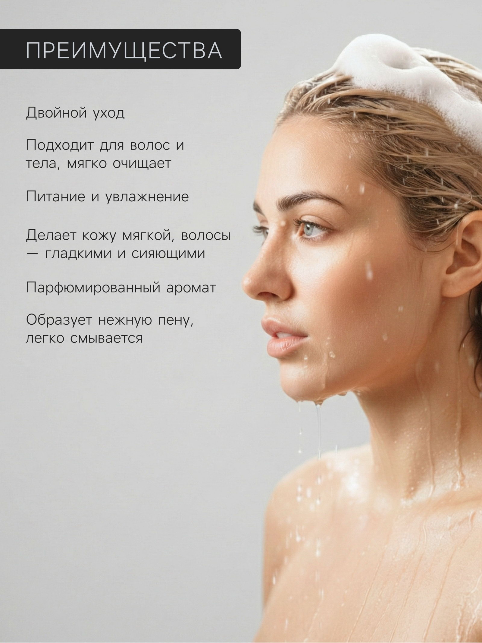 Аромат: Амбра, Чёрный перец Для кого: Для женщины, Для мужчины, Унисекс Область применения: Для головы, Для тела Вид: Гель, Шампунь Размер упаковки: 7 x 7 x 16 см. tnved: 3401300000 tnved: 3401300000 Температурное ограничение: Нет Тип волос: Для всех типов Эффект: Свежесть Вид шампуня: Жидкий Комбинированное средство для ухода за волосами и телом с соблазнительным ароматом амбры и перца. Обеспечивает бережное очищение, увлажнение и питание волос и кожи. Эффекты: