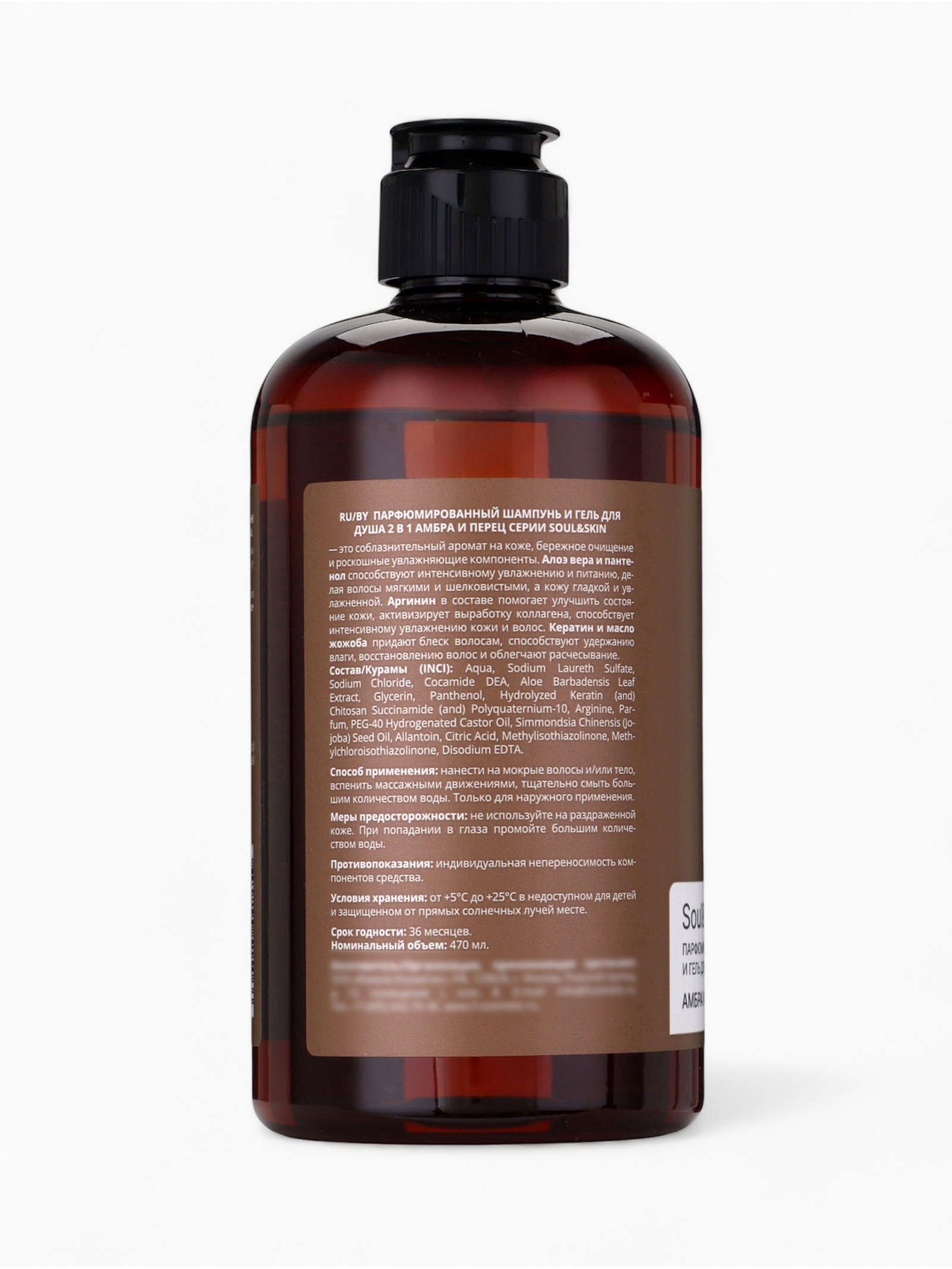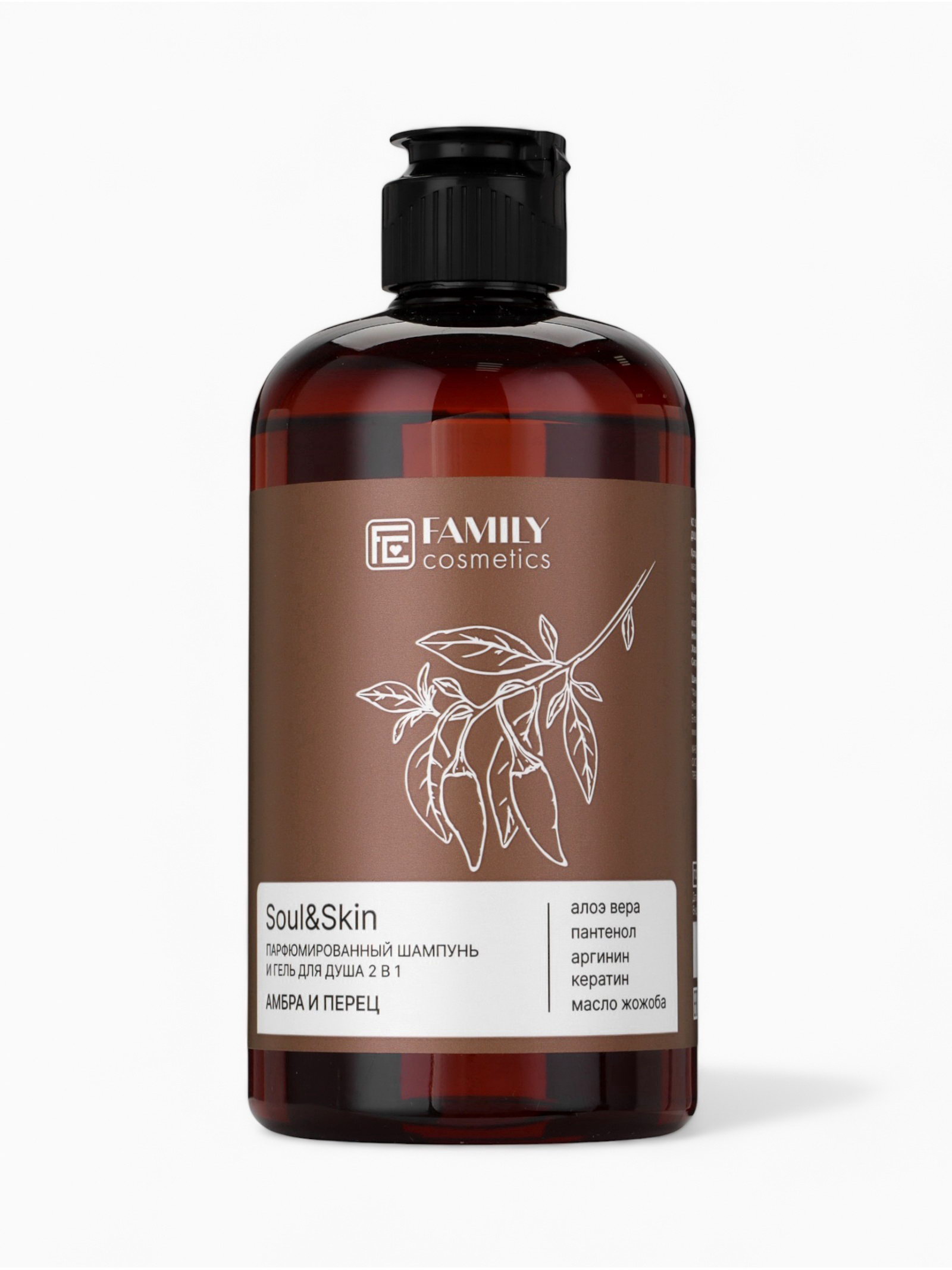 Шампунь и гель для душа парфюмированный Soul&Skin амбра и перец, 470 мл, 470 мл., Family Cosmetics, Россия