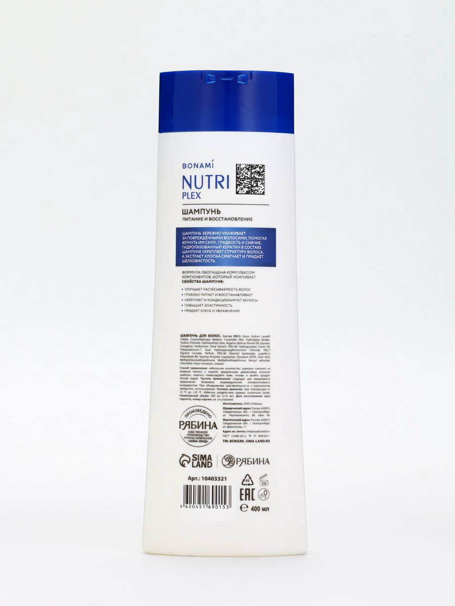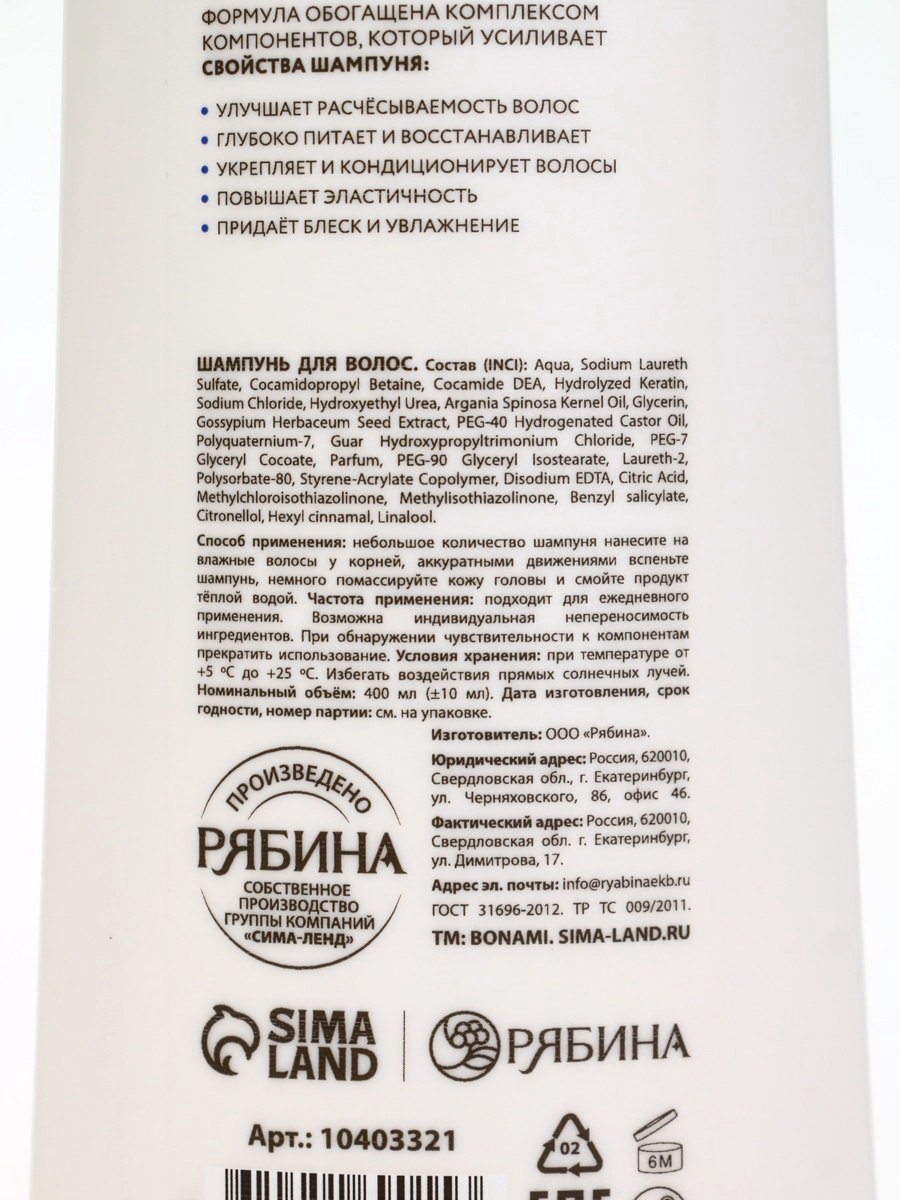 Шампунь для волос "Питание и восстановление", 400 мл, 400 мл., BONAMI, Россия