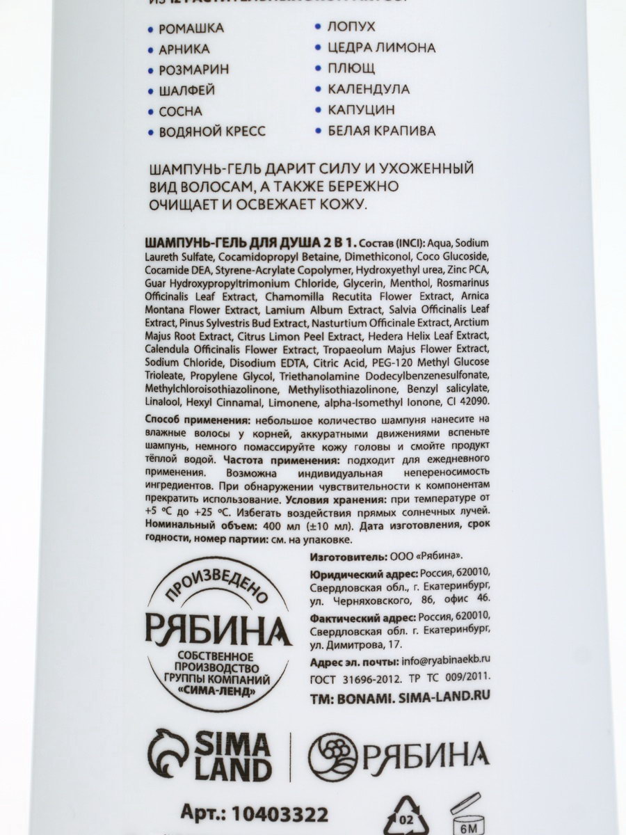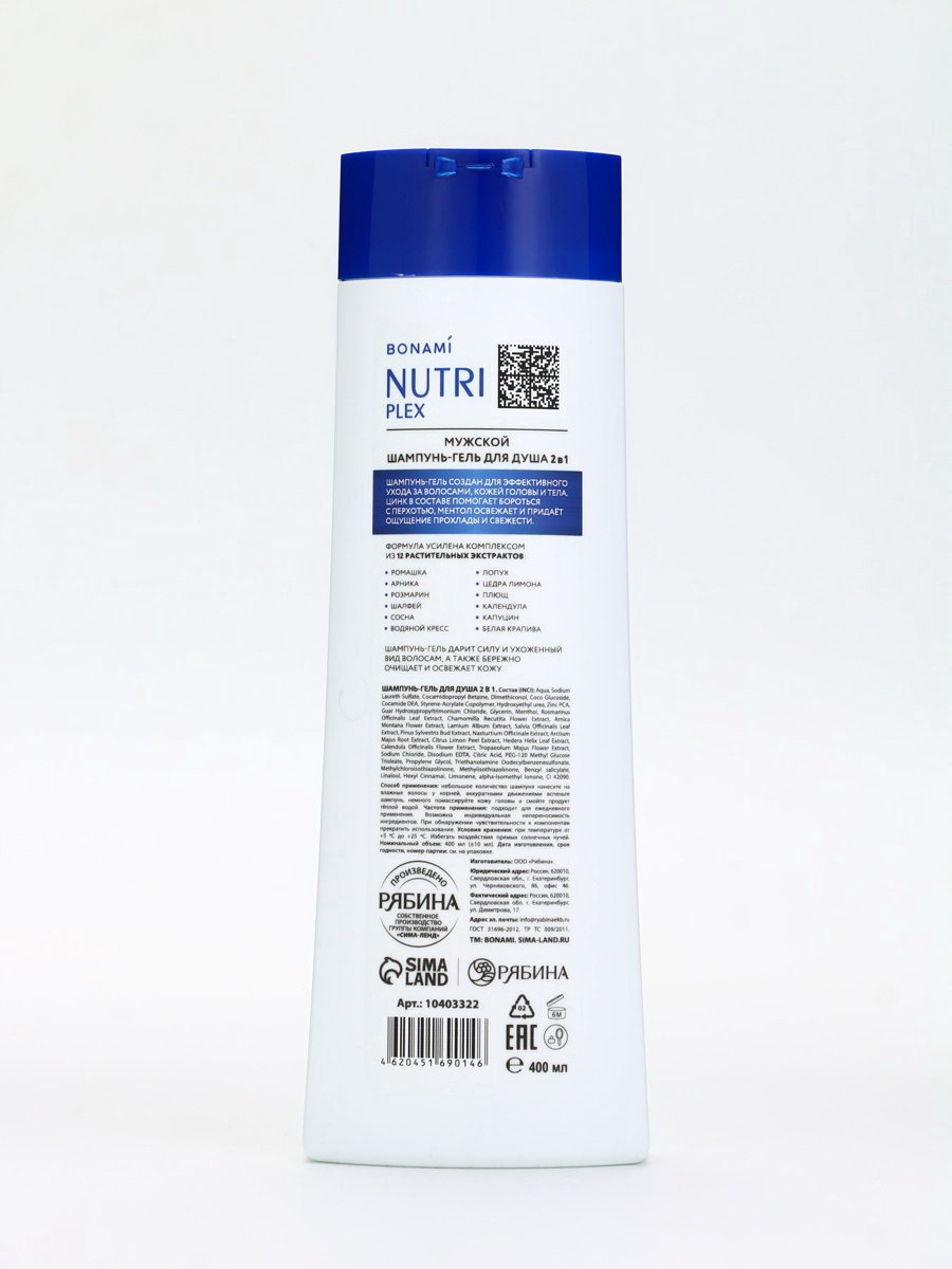 Шампунь для волос "Мужской 2в1", 400 мл, 400 мл., BONAMI, Россия