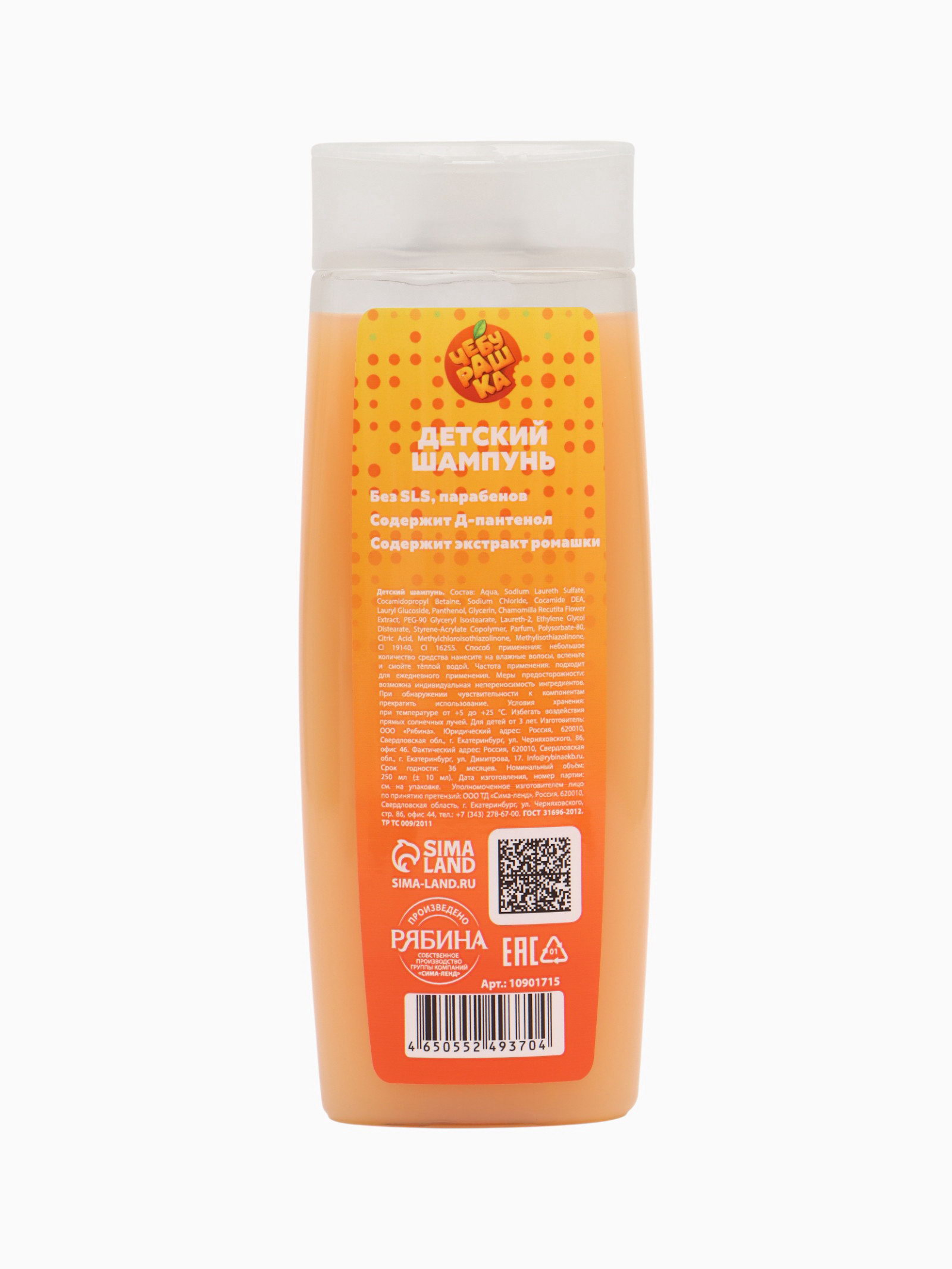 Детский шампунь, аромат апельсиновое мороженое, 250 мл, Чебурашка, 250 мл., ЧЕБУРАШКА, Россия