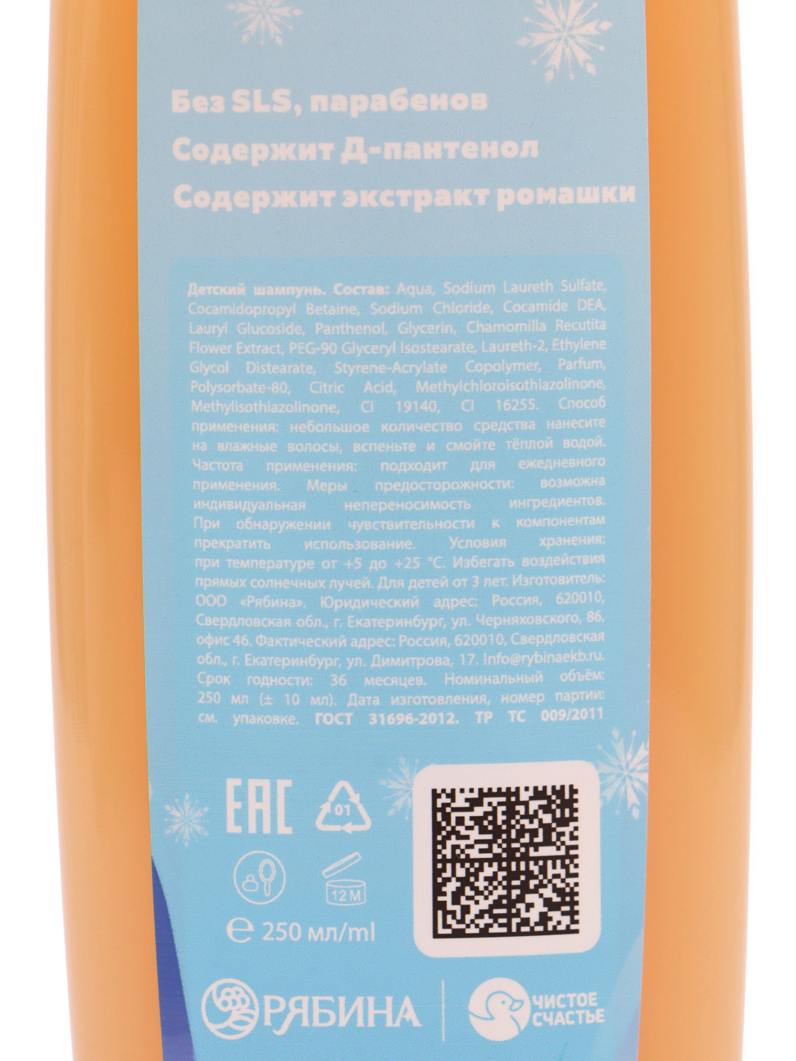 Детский шампунь, аромат пломбир, 250 мл, Холодное сердце, 250 мл., Чистое счастье, Россия