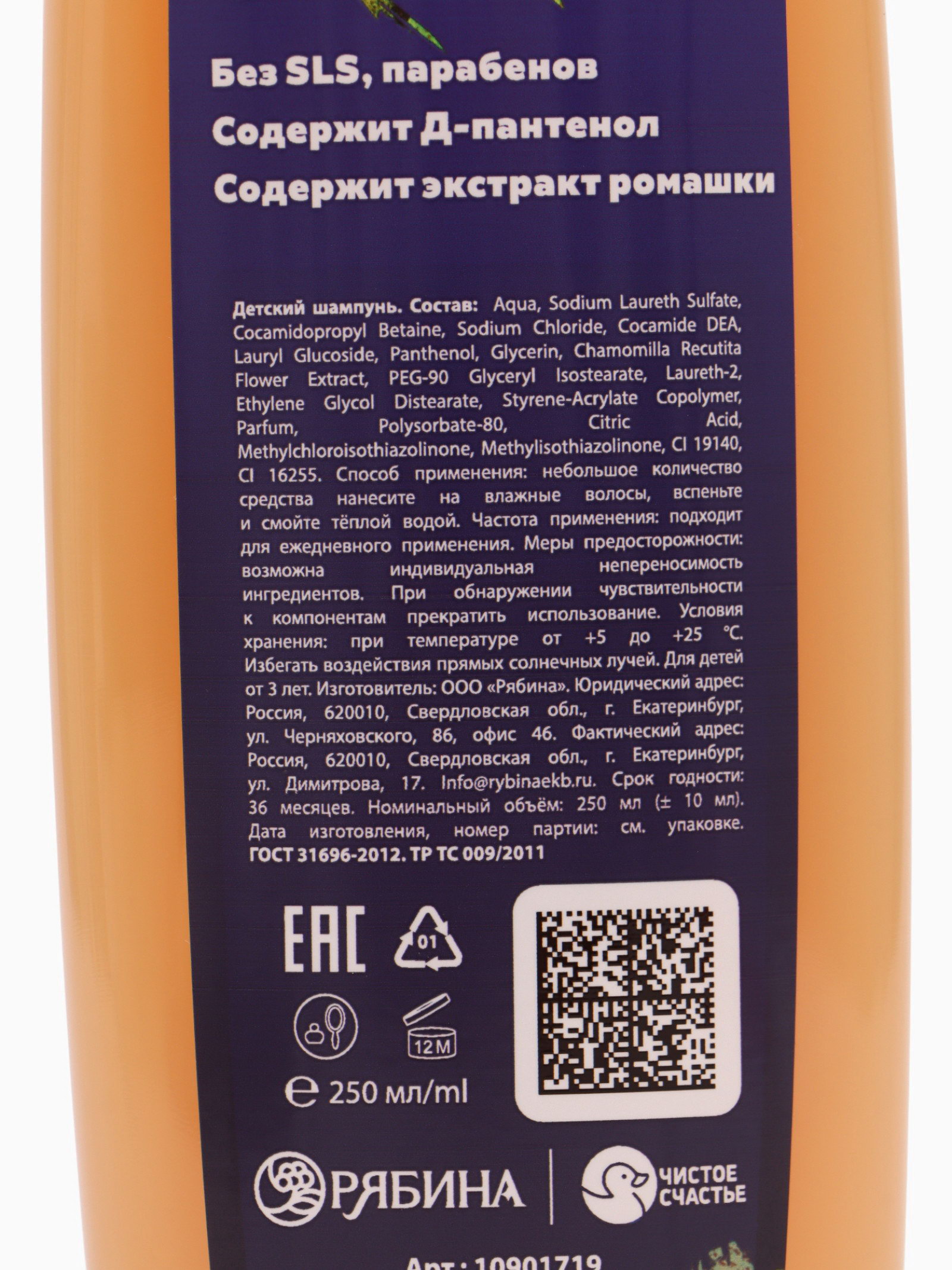 Детский шампунь, аромат пломбир, 250 мл, Человек-паук, 250 мл., Чистое счастье, Россия