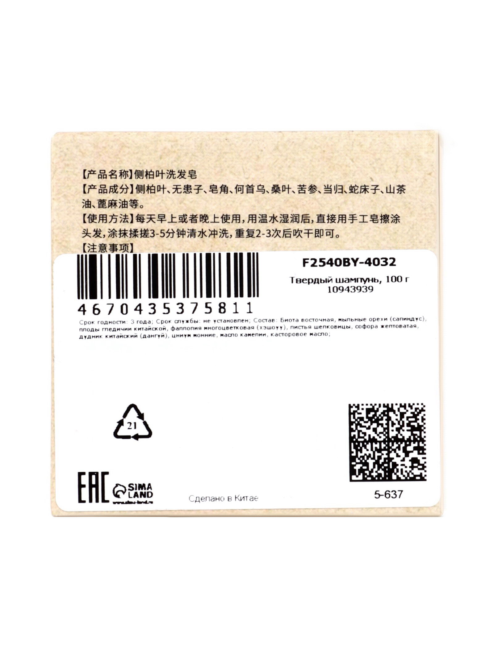 Твердый шампунь с экстрактами трав, 100 г, 100 мл., Китай
