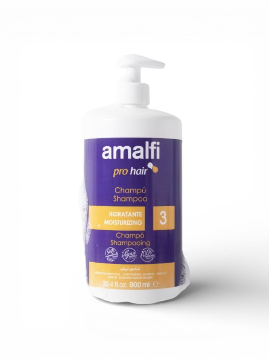 Для кого: Для женщины, Для мужчины, Унисекс Размер упаковки: 9 x 23 x 9 см. tnved: 3305100000 Тип волос: Для всех типов Температурное ограничение: Нет Температурное ограничение: Нет Вид шампуня: Жидкий Эффект: Увлажнение Аромат: Свежесть AMALFI Профессиональный увлажняющий шампунь "Moisturizing" 900 мл Профессиональный увлажняющий шампунь AMALFI "Moisturizing" создан для бережного ухода за волосами и ежедневного очищения. Его формула с кератином и аргановым маслом возвращает волосам естественный блеск, мягкость и шелковистость, делая их послушными и ухоженными. Подходит для всех типов волос и удобен для регулярного использования благодаря большому объему 900 мл с дозатором идеальный вариант для дома или салона. Преимущества:
