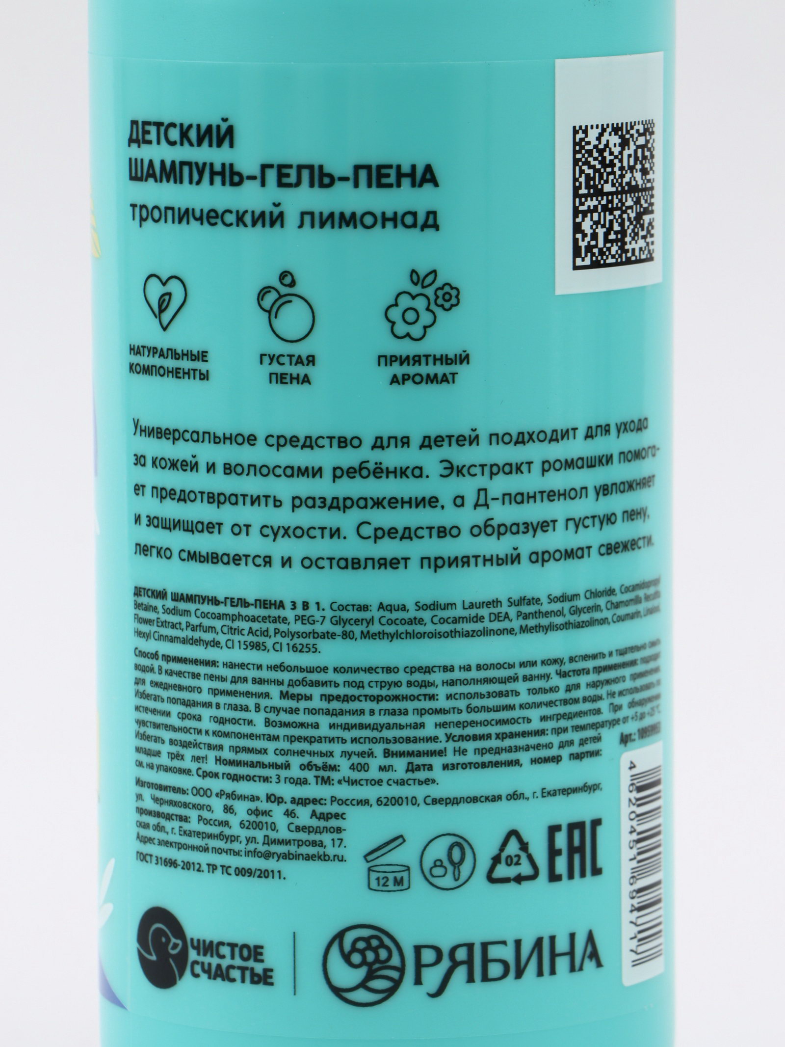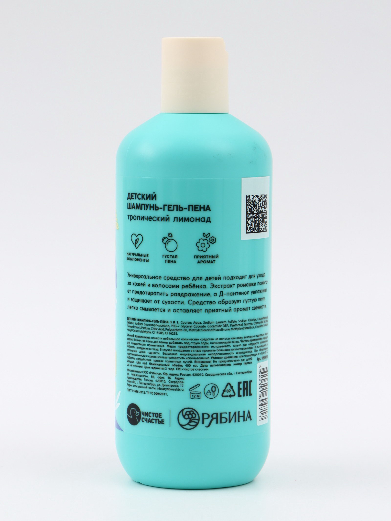 Детский шампунь-гель-пена 3в1, 400 мл, аромат тропический лимонад, "Монстрик", 400 мл., Чистое счастье, Россия