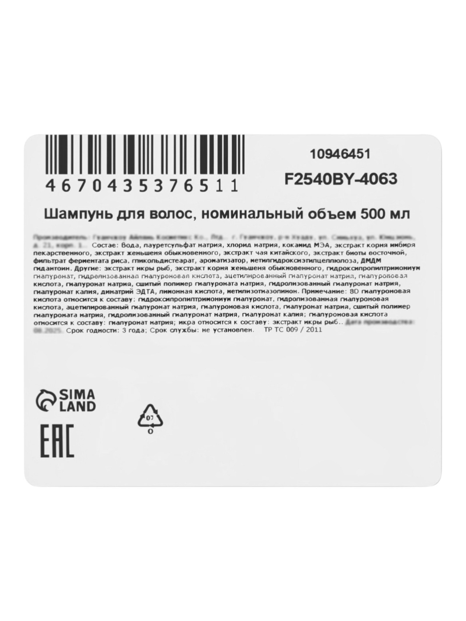 Шампунь ароматизированный с гиалуроновой кислотой, 500 мл, 500 мл., Китай