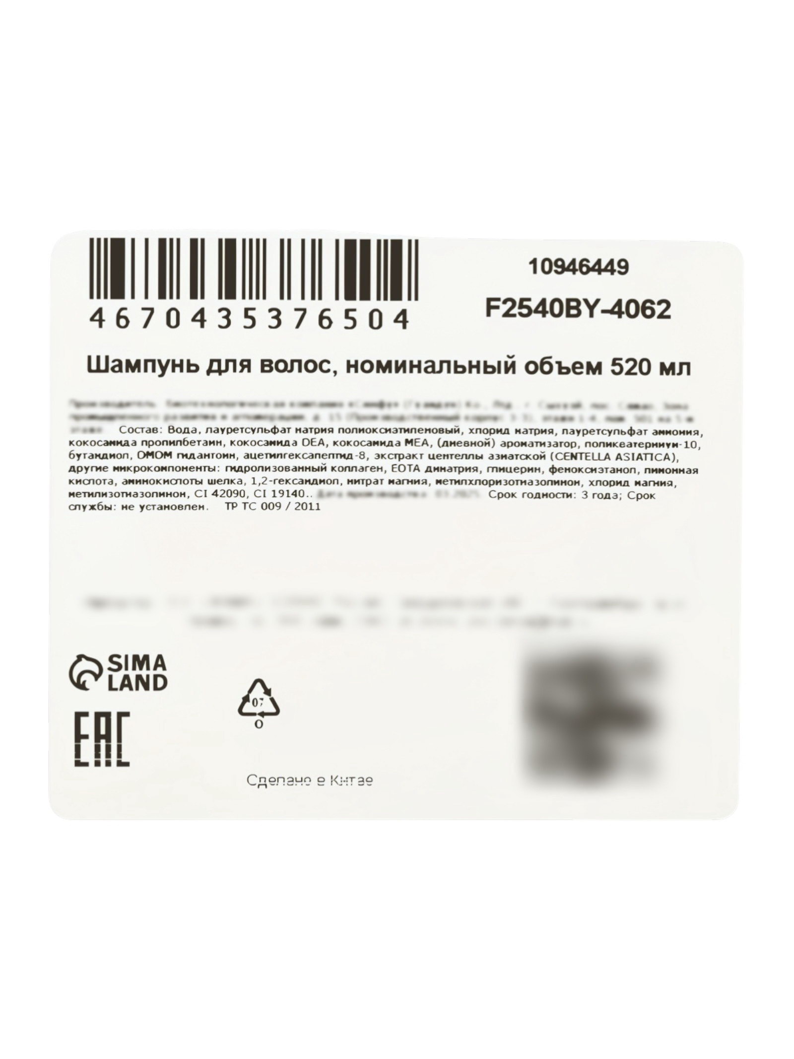 Шампунь парфюмированный для придания объема волосам, 520 мл, Китай