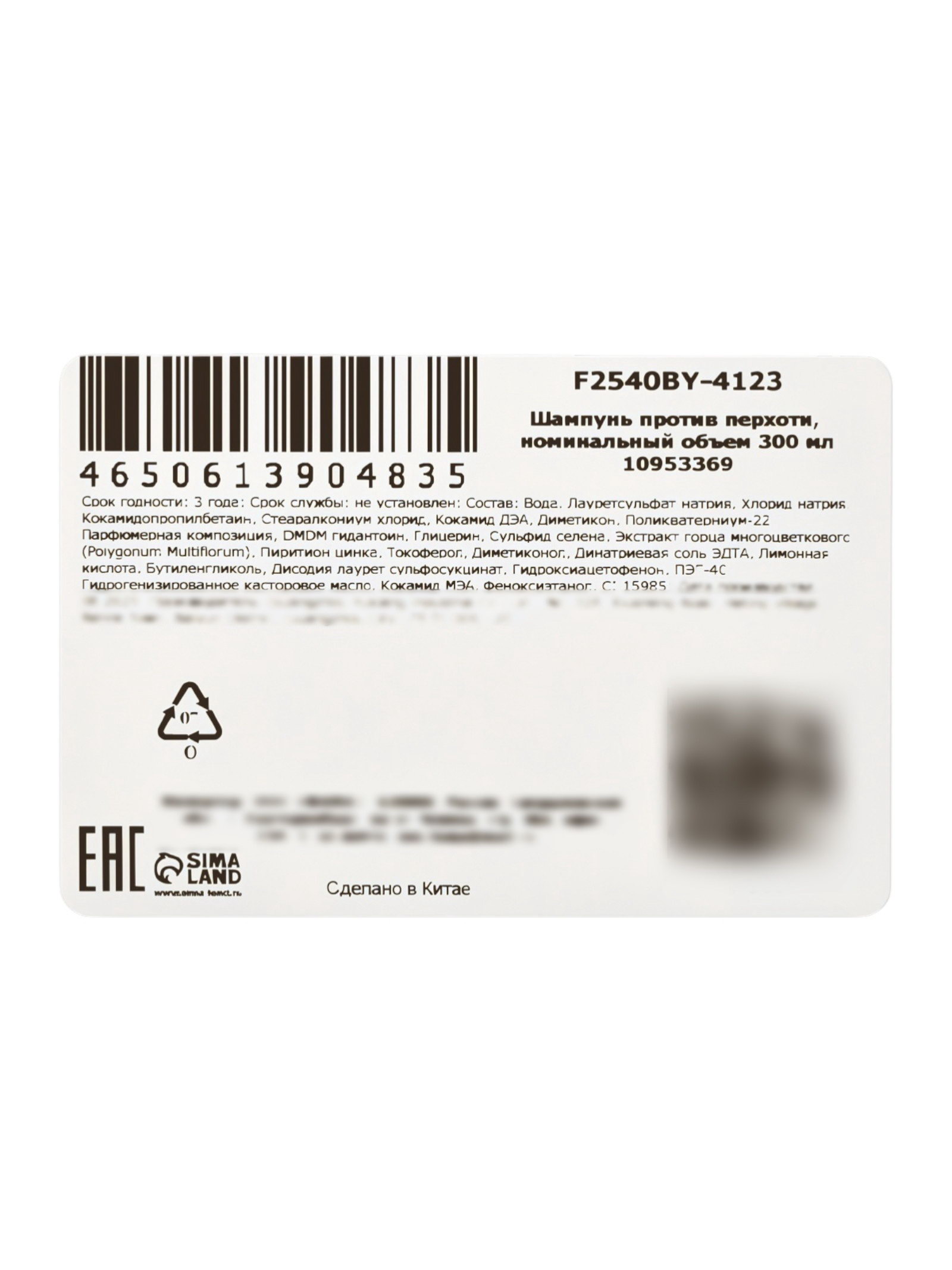 Шапунь против перхоти Dr. Soromer, 300 мл, Китай