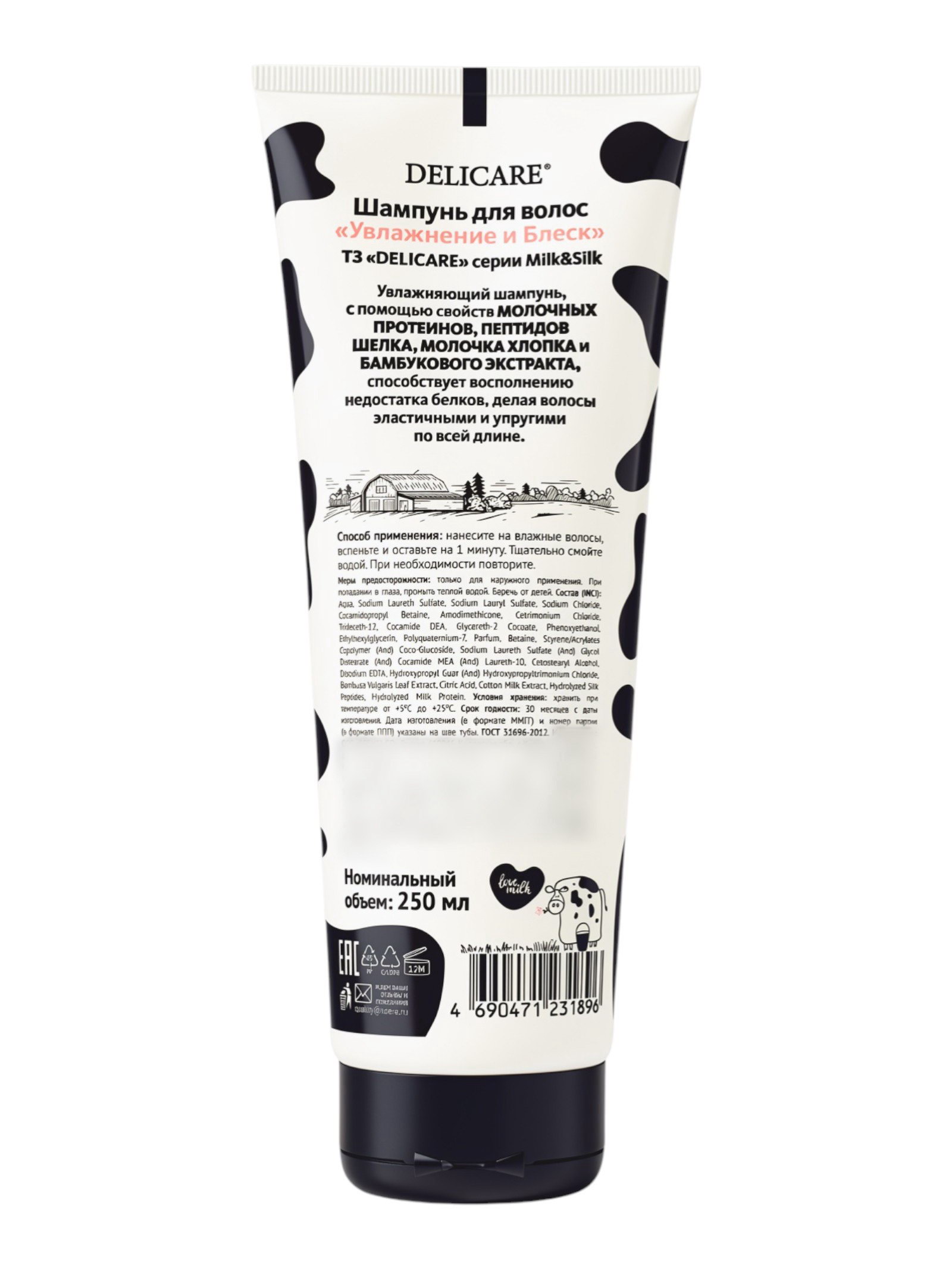 Шампунь для волос Milk&Silk, увлажнение, 250 мл, Delicare, Россия