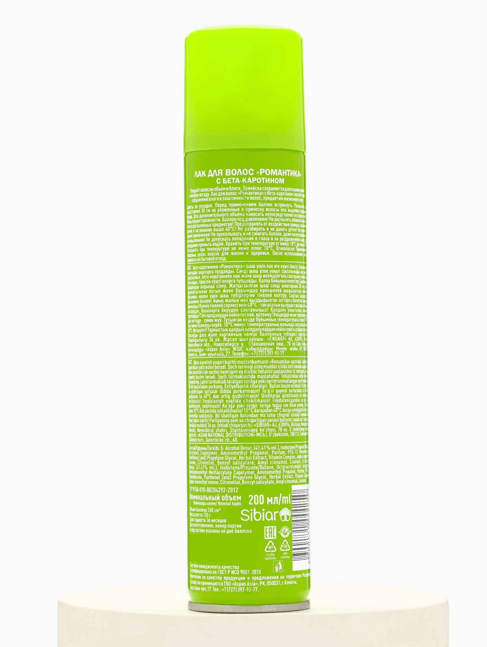 Лак для волос очень сильная фиксация с В-каротином, 200 мл, 200 мл., Романтика, Россия