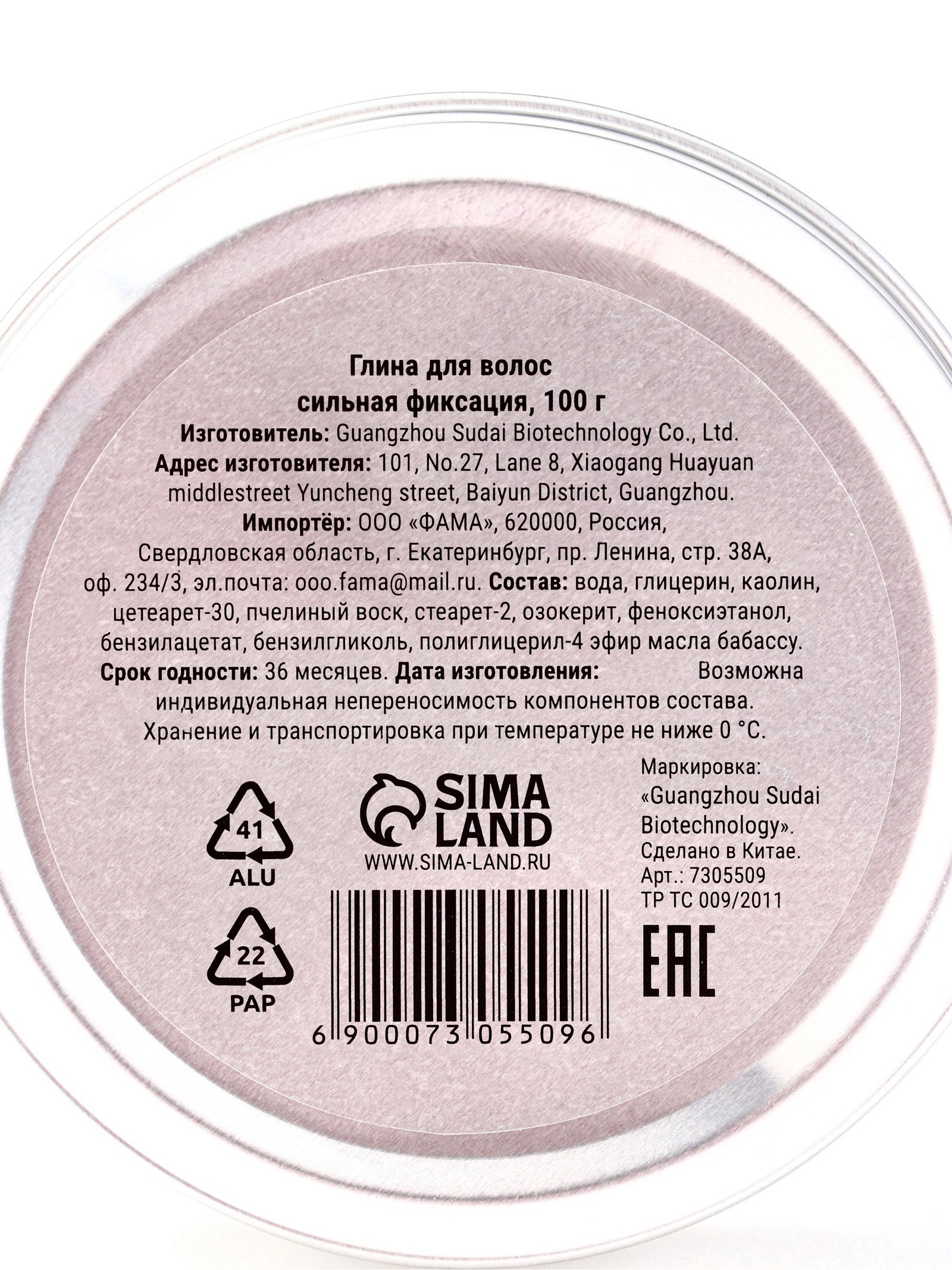Глина для укладки волос "Сильная фиксация", 100 г, 7x7x3 см., SB BEAUTY, Китай