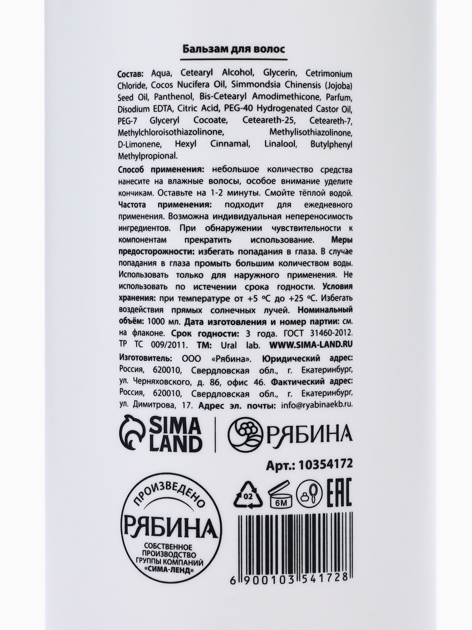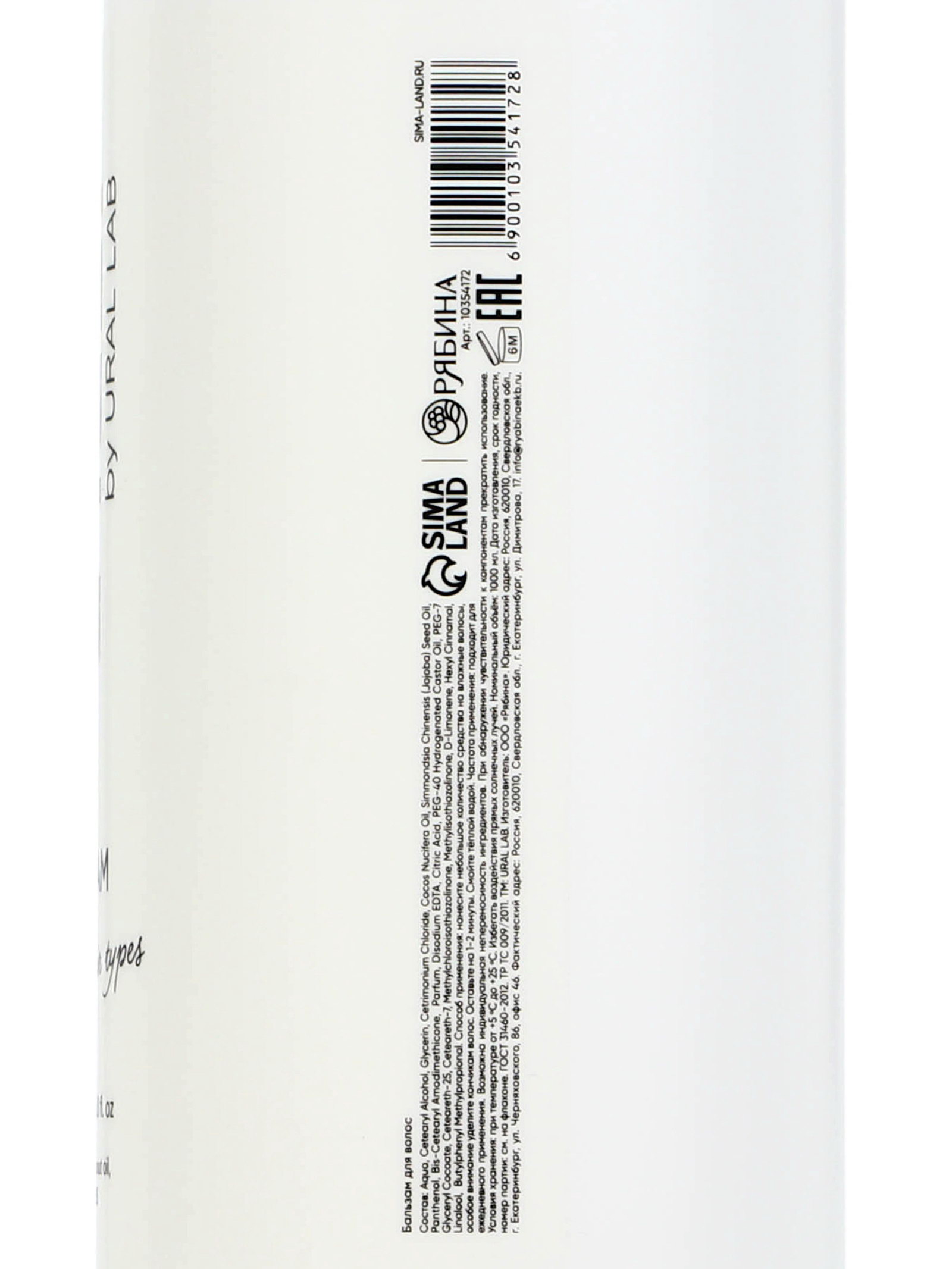 Бальзам для волос, аромат цветочный, 1000 мл, ULAB, 1000 мл., URAL LAB, Россия