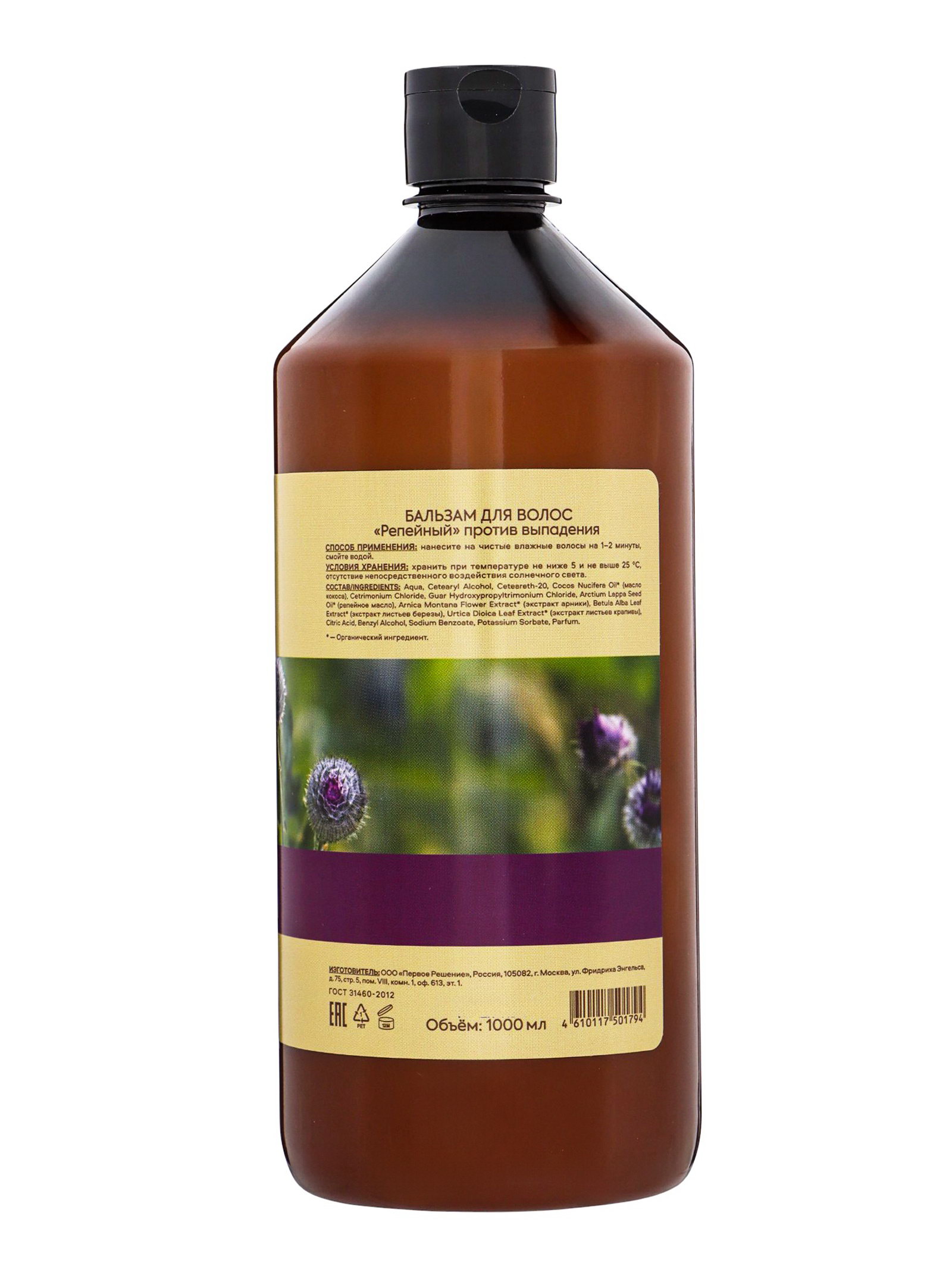 Бальзам против выпадения волос "Народная косметика № 1" репейный, 1000 мл, 1000 мл., ПЕРВОЕ РЕШЕНИЕ, Россия