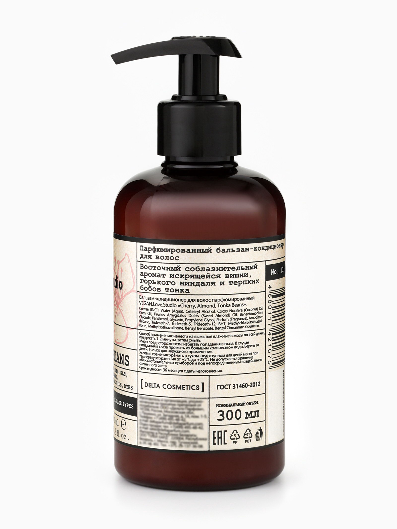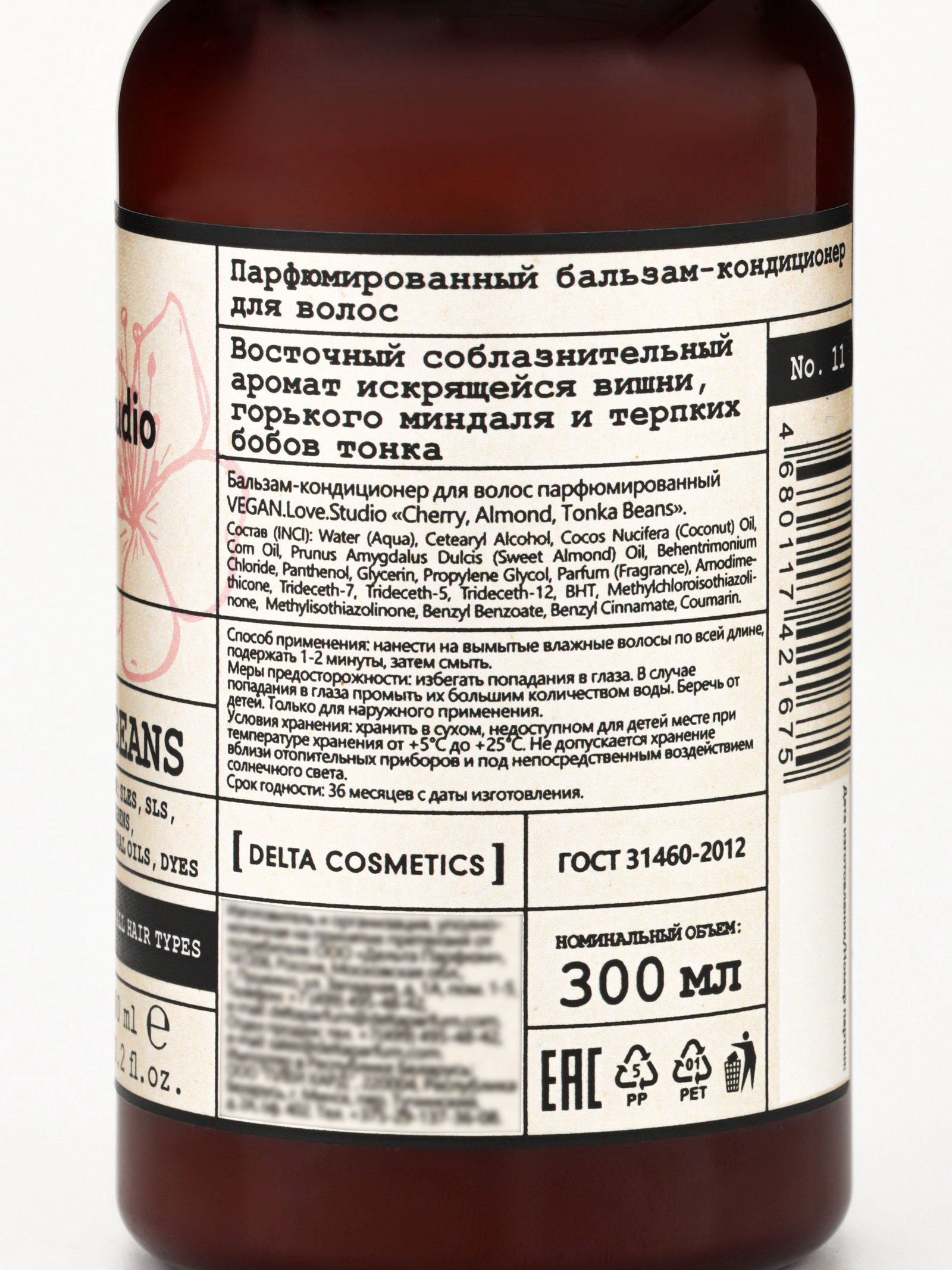 Бальзам-кондиционер для волос парфюмированный "Вишня, Миндаль, Бобы тонка", 300 мл, 300 мл., VEGAN.Love.Studio, Россия