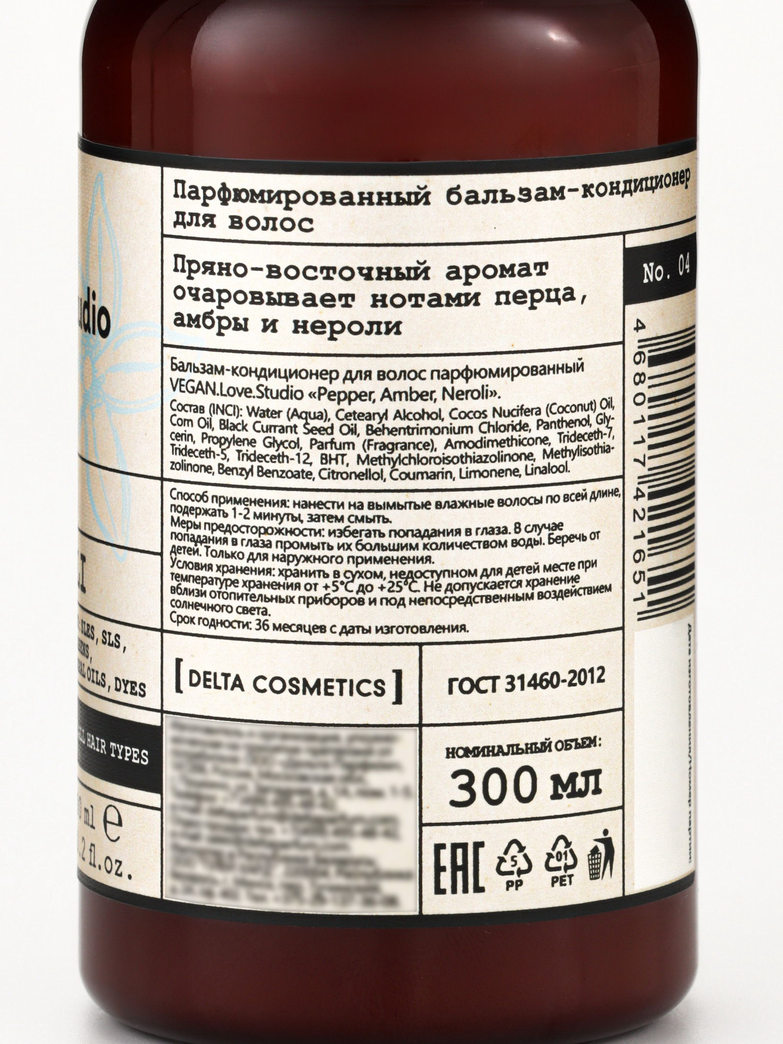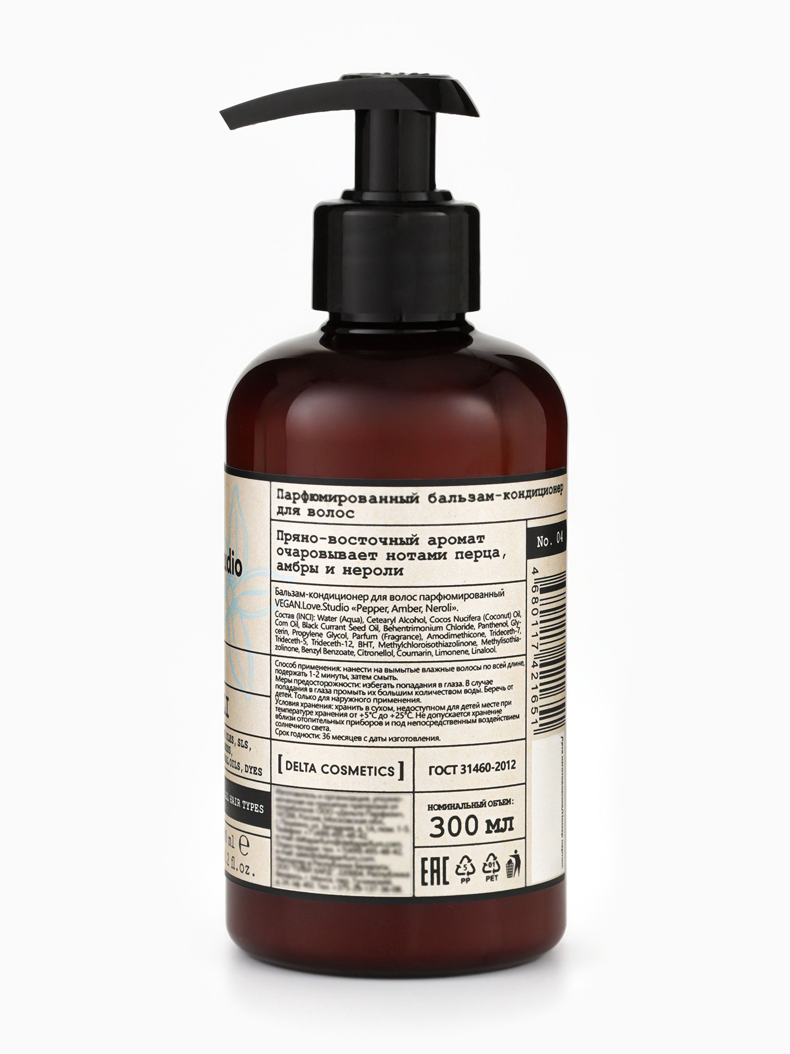 Бальзам-кондиционер для волос парфюмированный "Перец, Амбра, Нероли", 300 мл, 300 мл., VEGAN.Love.Studio, Россия