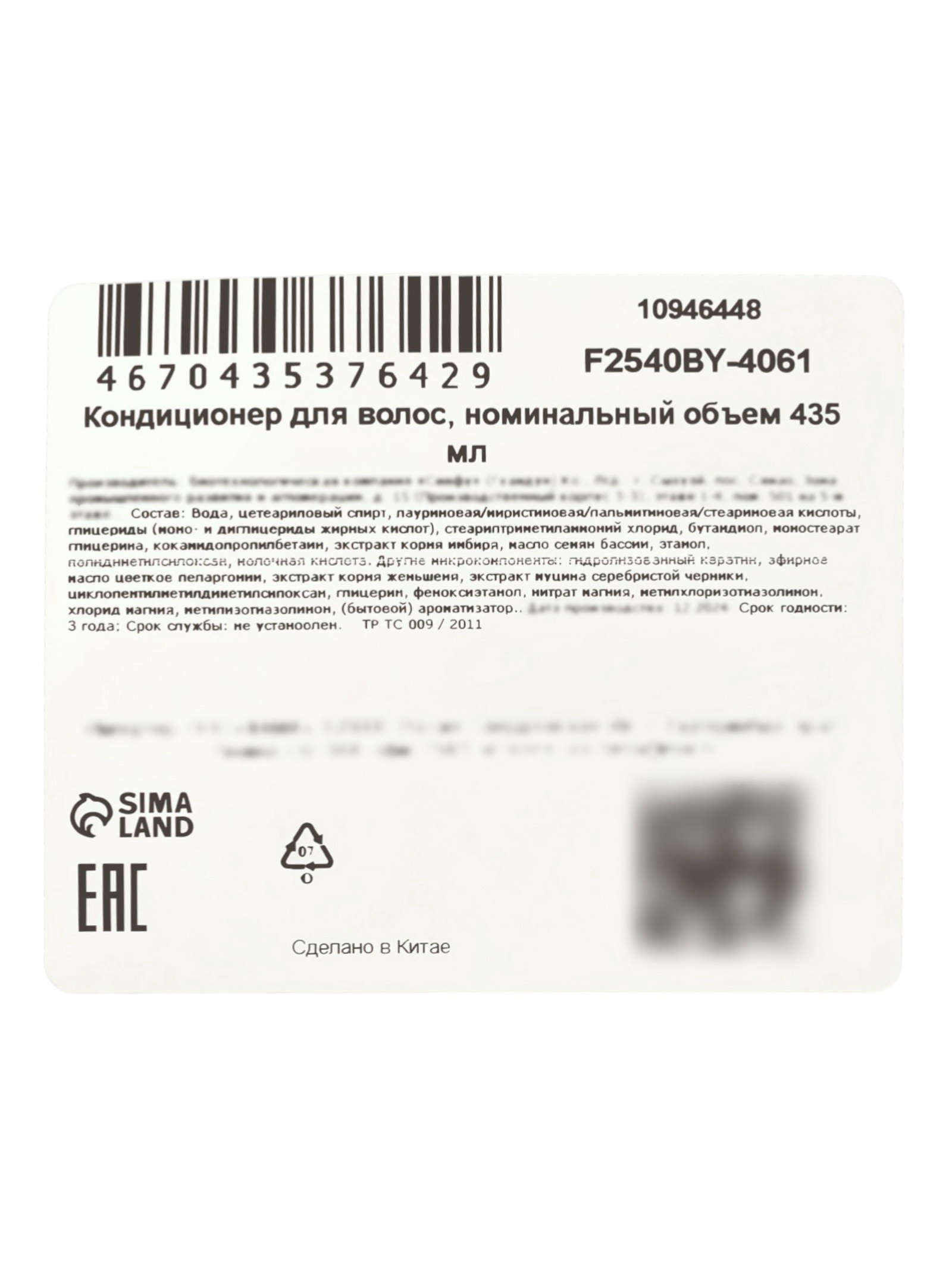 Кондиционер для волос с эфирным маслом и кератином, 435 мл, Китай