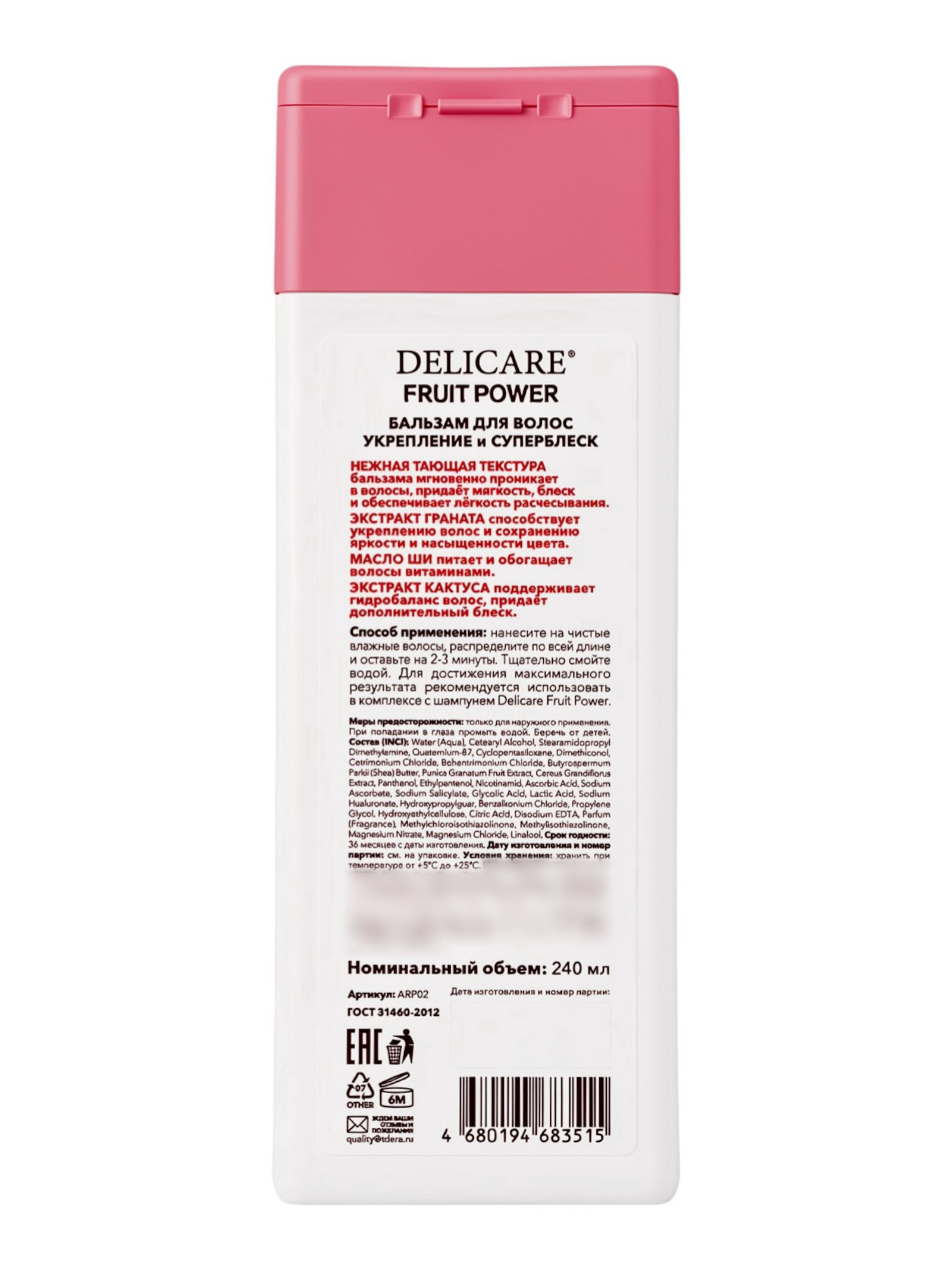 Бальзам?маска для волос Fruit Power, укрепление и суперблеск, с гранатом, 240 мл, Delicare, Россия
