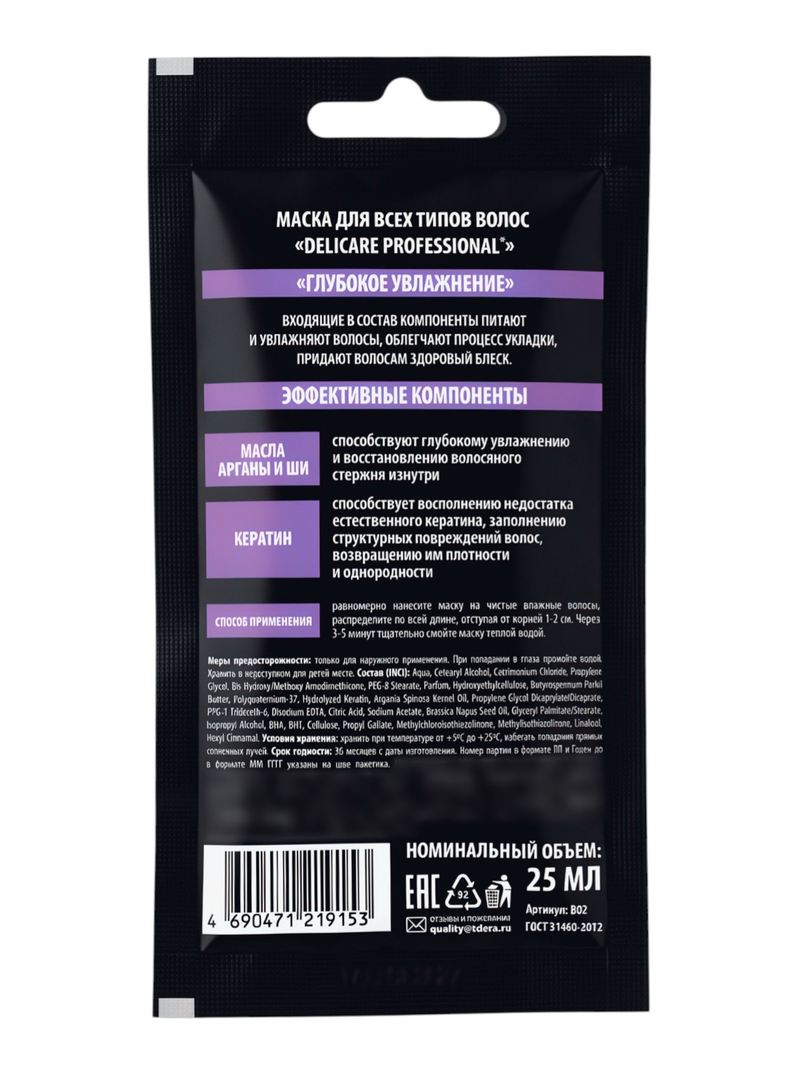 Маска?саше для всех типов волос Professional, с кератином, 25 мл, Delicare, Россия