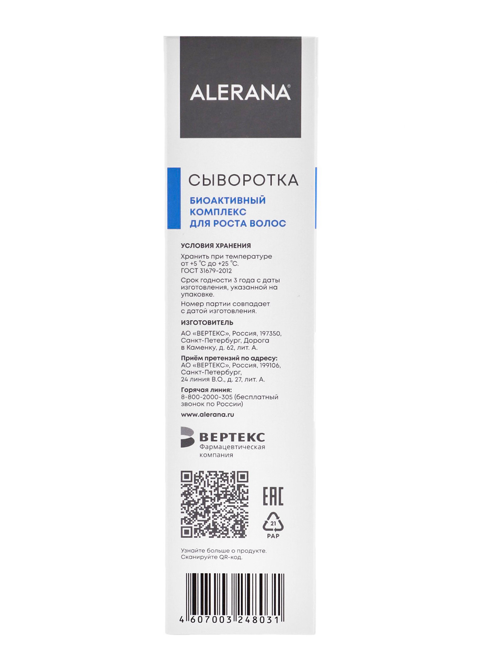 Сыворотка для волос "Растительный стимулятор роста", 100 мл, 6.8x4.5x17.8 см., Alerana, Россия