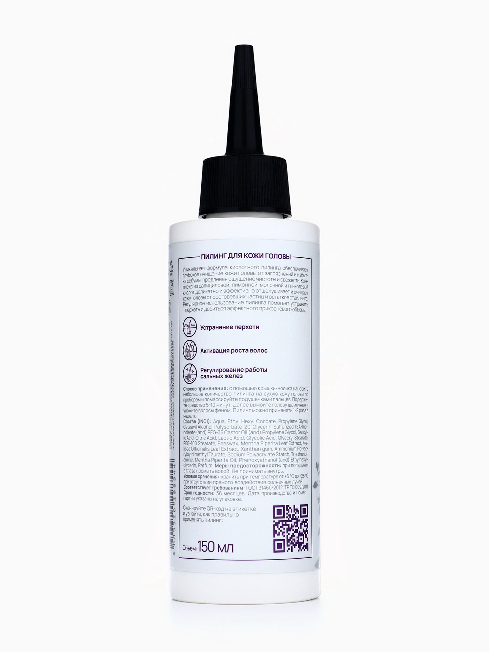 Размер упаковки: 4.5 x 17 x 4.5 см. Вес, г/Объём, мл: 150 Тип волос: Для всех типов Температурное ограничение: Нет tnved: 3304990000 Сульфоконцентрол (сульфированный TEA-рицинолеат) - нормализует работу сальных желез, уменьшая выработку кожного себума, предотвращает быстрое засаливание волос, эффективно подавляет патогенные микроорганизмы, вызывающие перхоть Комплекс АНА-кислот (гликолевая, молочная, лимонная кислота) - мягко отшелушивают ороговевшие частицы кожи головы, способствуют очищению от загрязнений, остатков стайлинга, улучшая кровообращение кожи головы и ускоряя рост волос ВНА-кислота (салициловая кислота) - помогает регулировать выработку кожного сала, тем самым борется с жирностью волос у корней Экстракт и масло перечной мяты - успокаивает, освежает кожу, снимает раздражение Экстракт мелиссы - успокаивает и смягчает кожу В чем особенность?