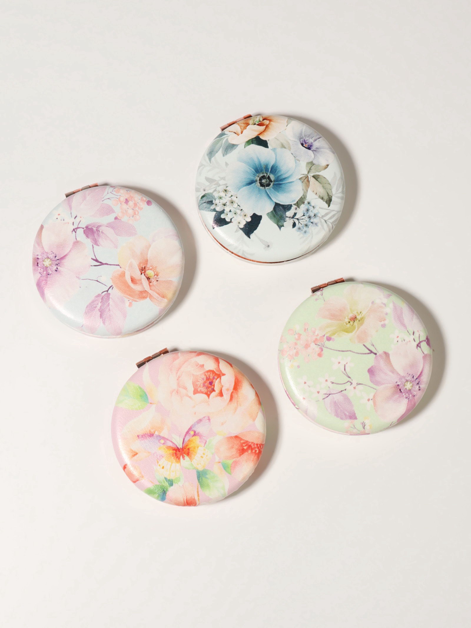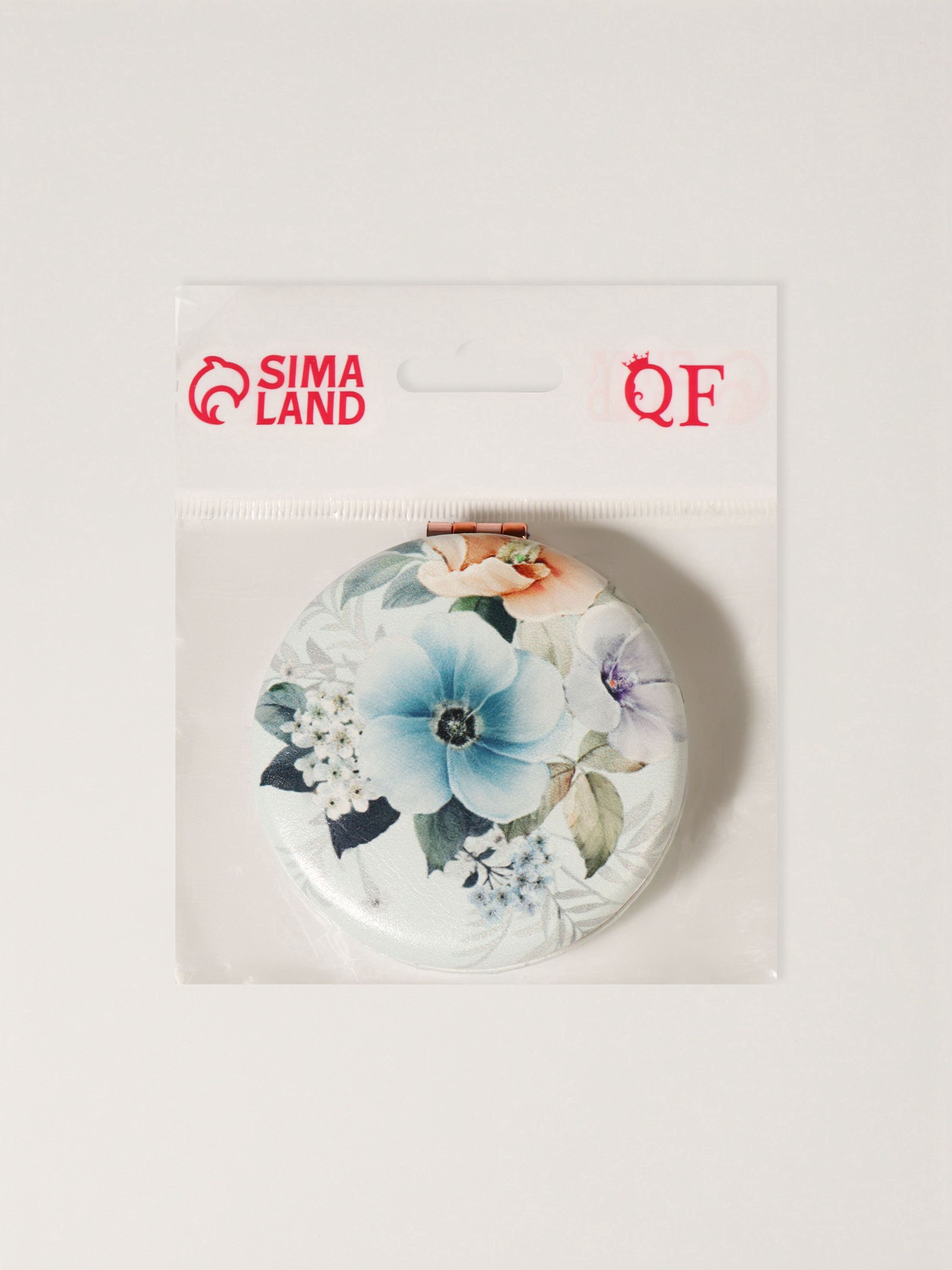 Зеркало складное "Цветочки", d=7.5 см, с увеличением, искусственная кожа, рисунок МИКС, 7.5х7.5х1.7 см., QF, Китай