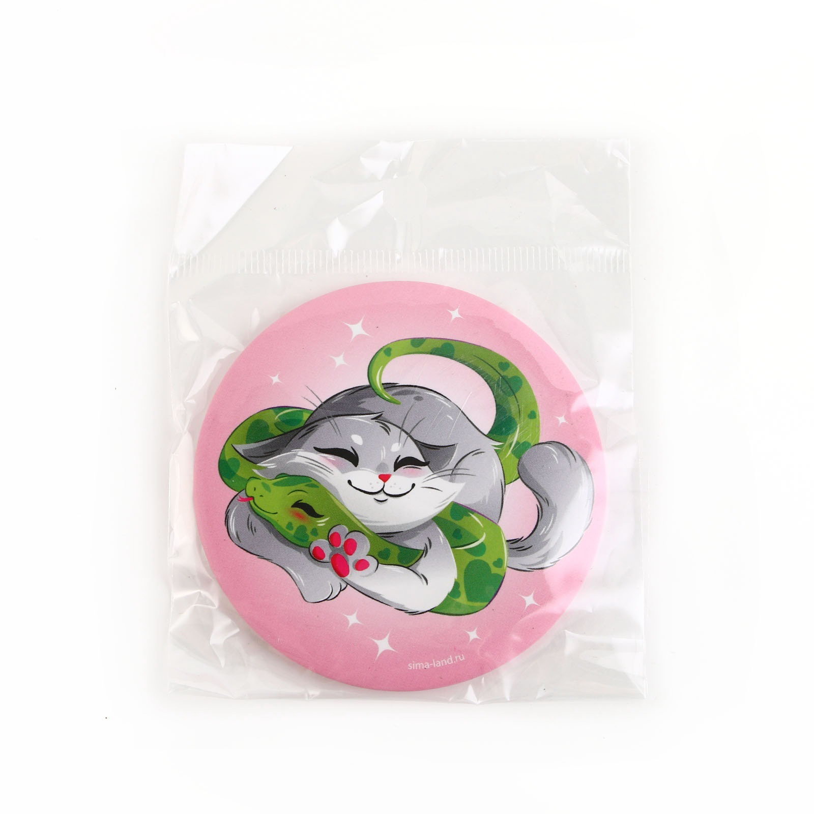 Зеркало карманное новогоднее "Новый год: Котенок", диам.7 см, Сима-ленд, Китай