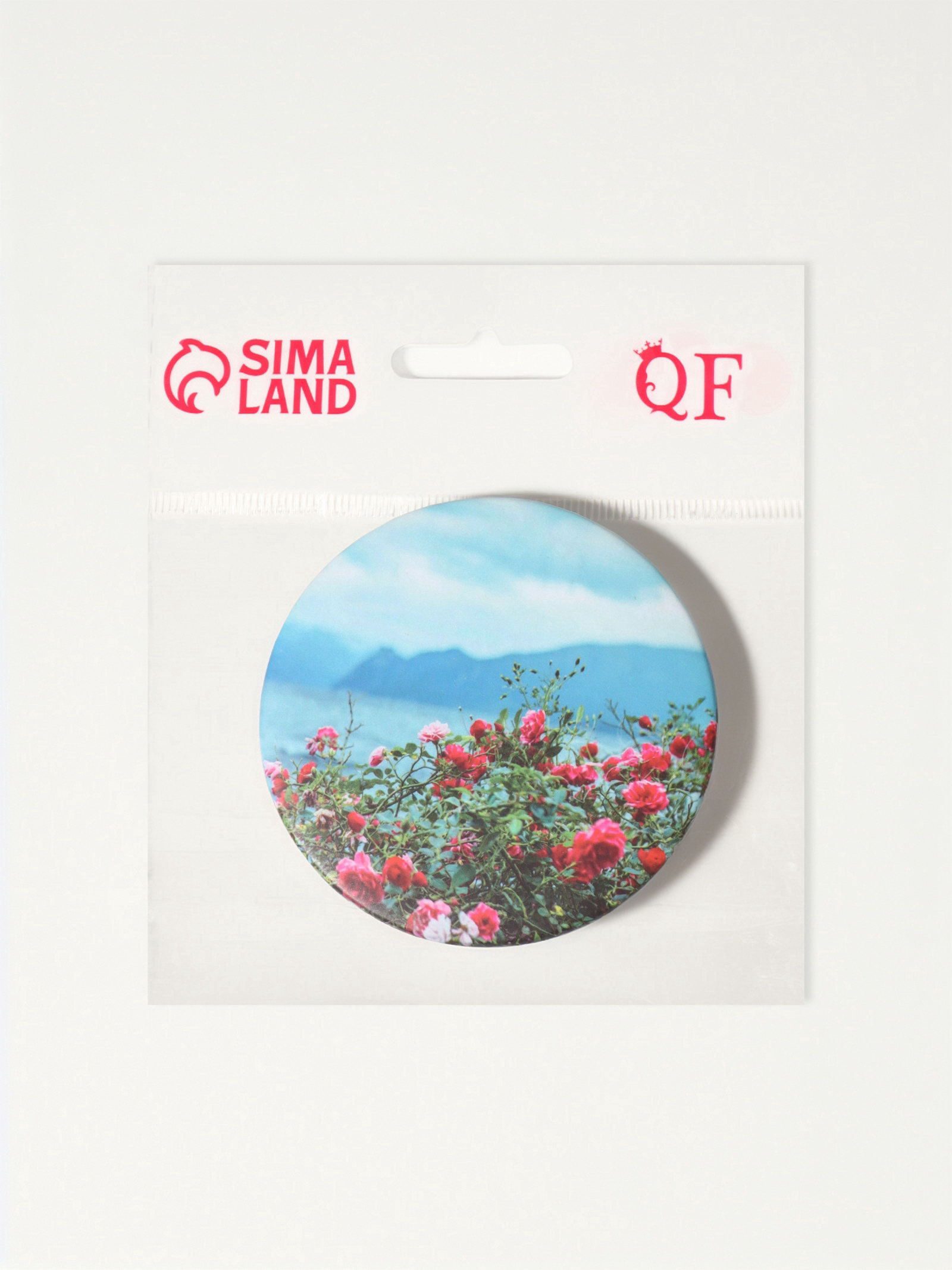 Зеркало складное "Пляж", d=7.5 см, с увеличением х2, голубое, 7.5x7.5x0.7 см., QF, Китай