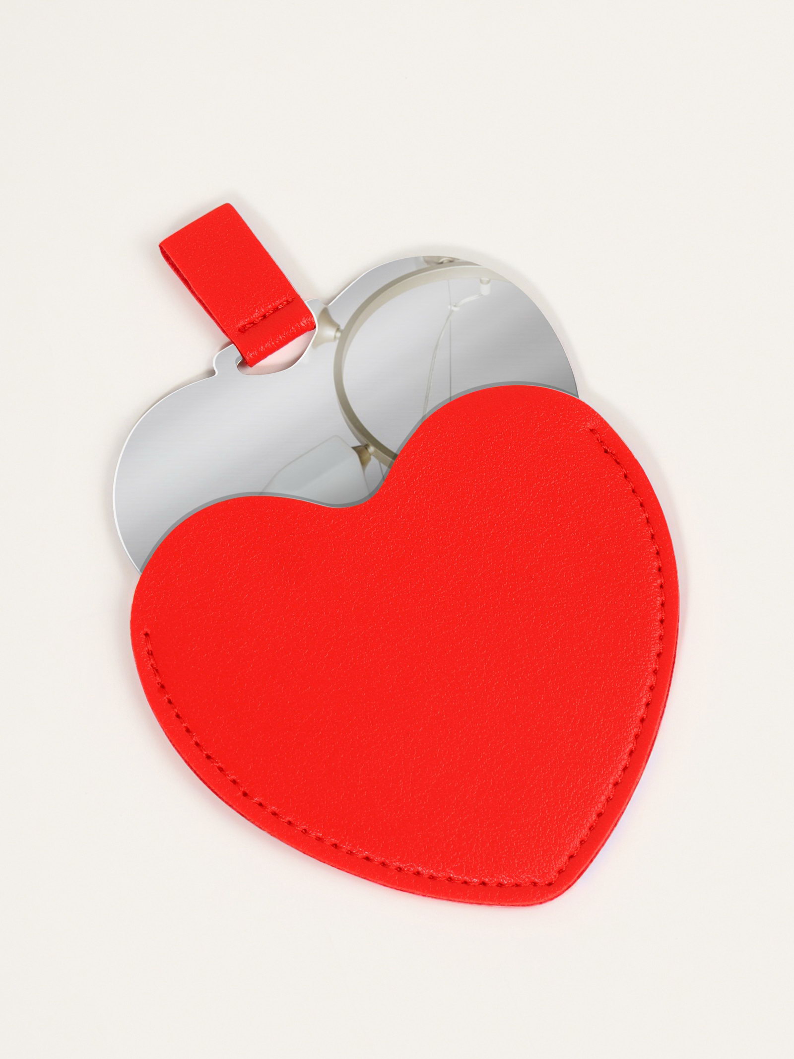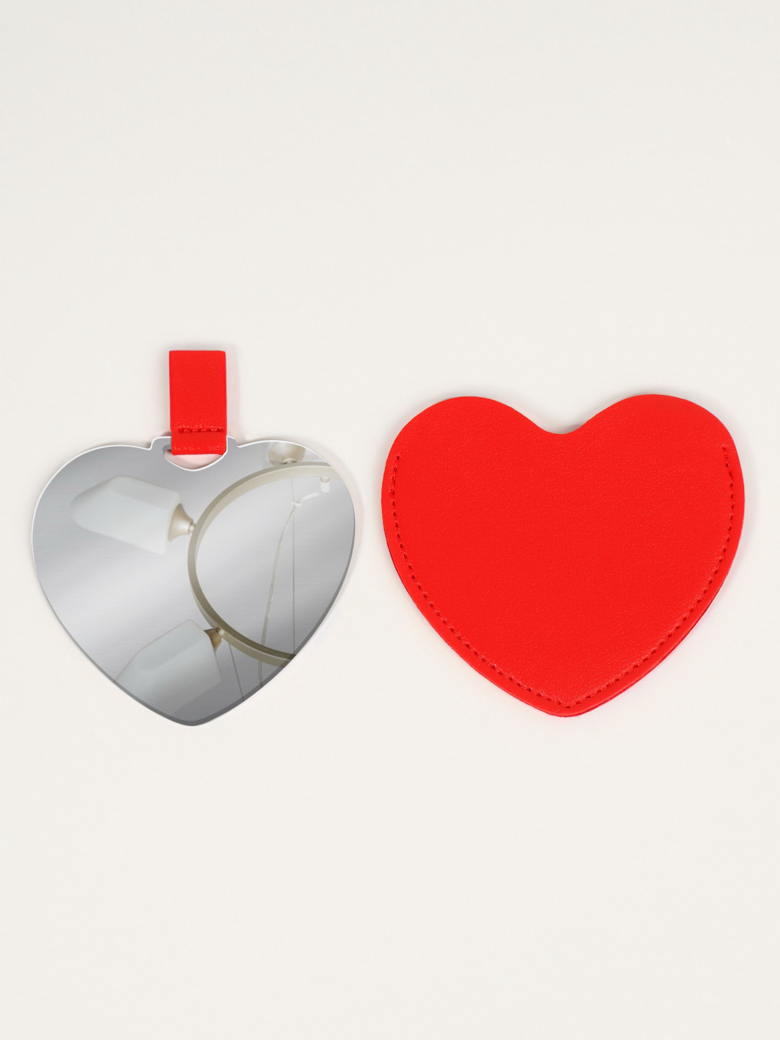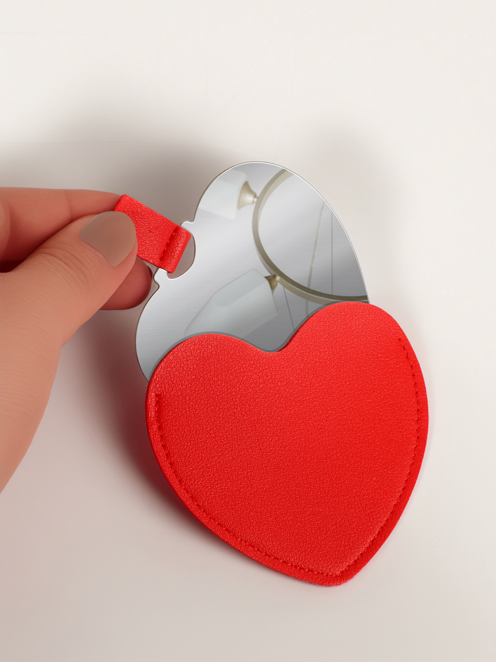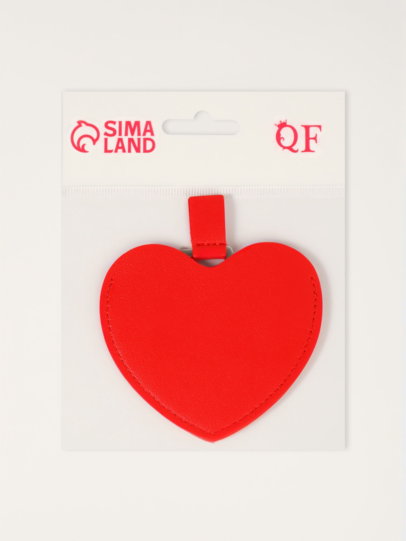 Зеркало карманное "Сердце", 8.4x9.5 см, в чехле из искусственной кожи, красное, 7x7x0.5 см., QF, Китай