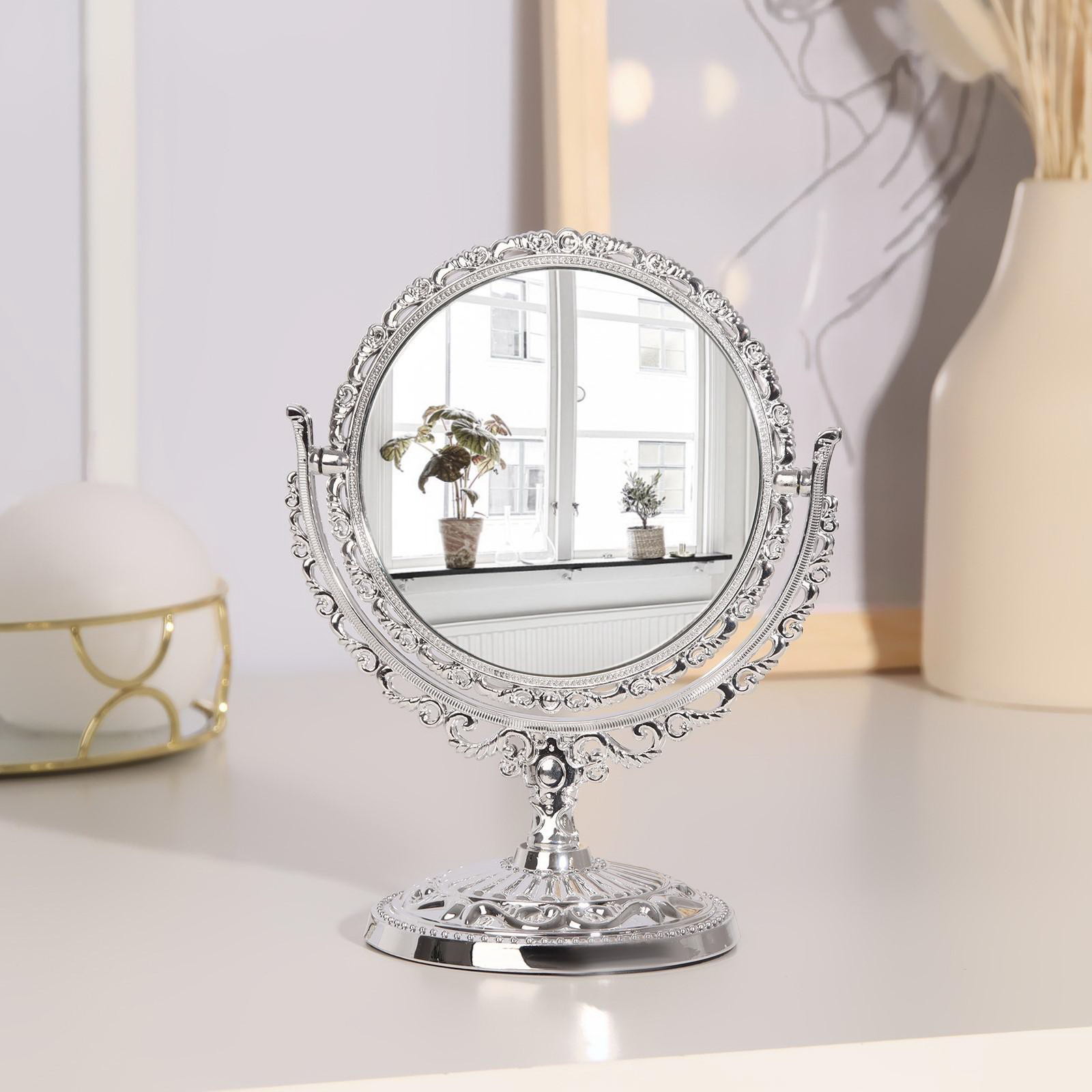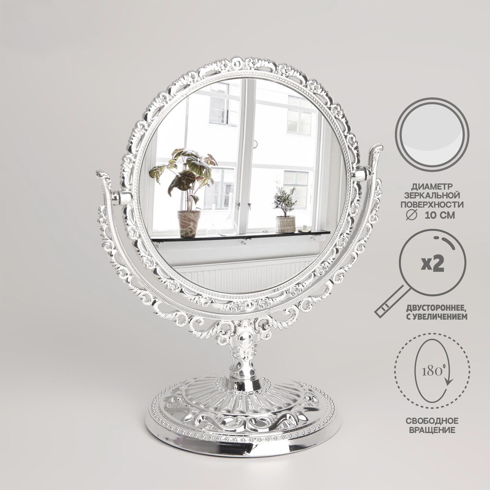 Зеркало настольное "Круг", двустороннее, с увеличением, d зеркальной поверхности 10 см, цвет серебристый, 10х10х9 см., Queen fair, Китай