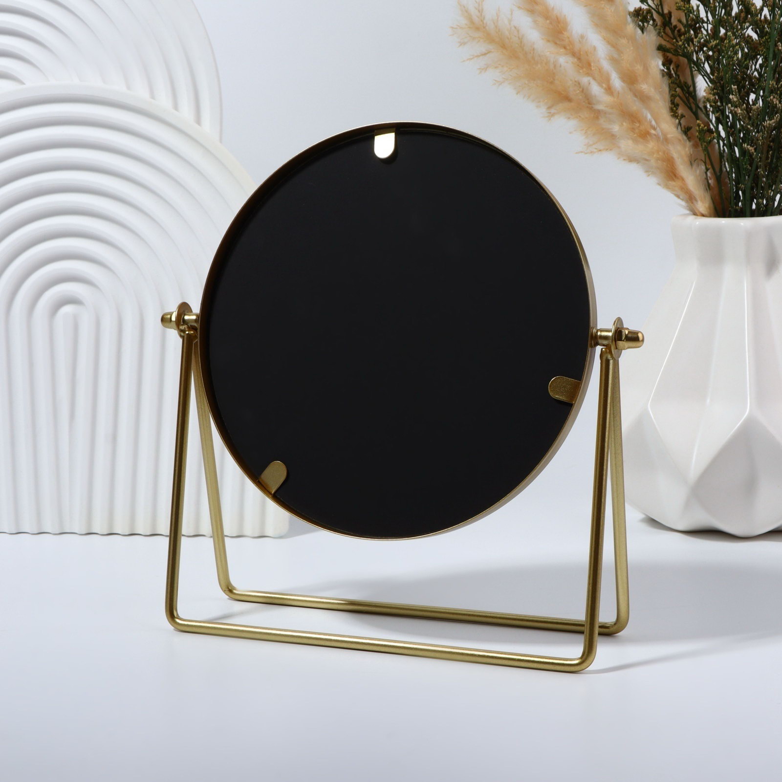 Зеркало настольное PREMIUM MIRROR, d зеркальной поверхности 14.5 см, 20.3x20.5 см, золотистое, 14.5х14.5х5.5 см., QF, Китай