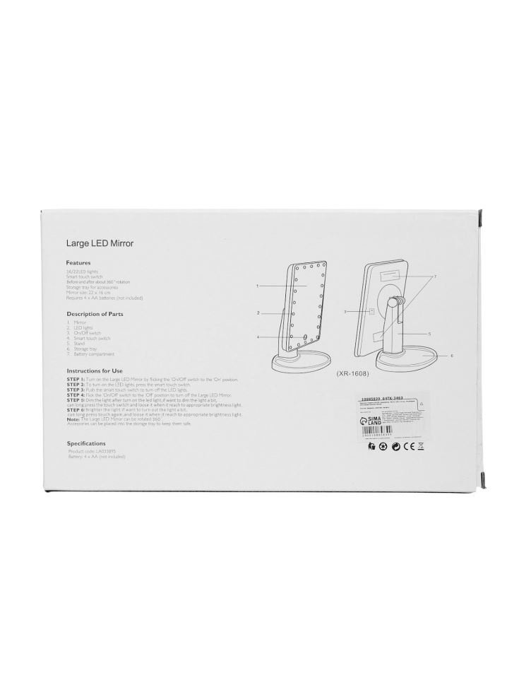 Зеркало KZ-06, подсветка, 26.5x16x12 см, 16 диодов, сенсорная кнопка, белое, 16x26.5x12 см., Китай