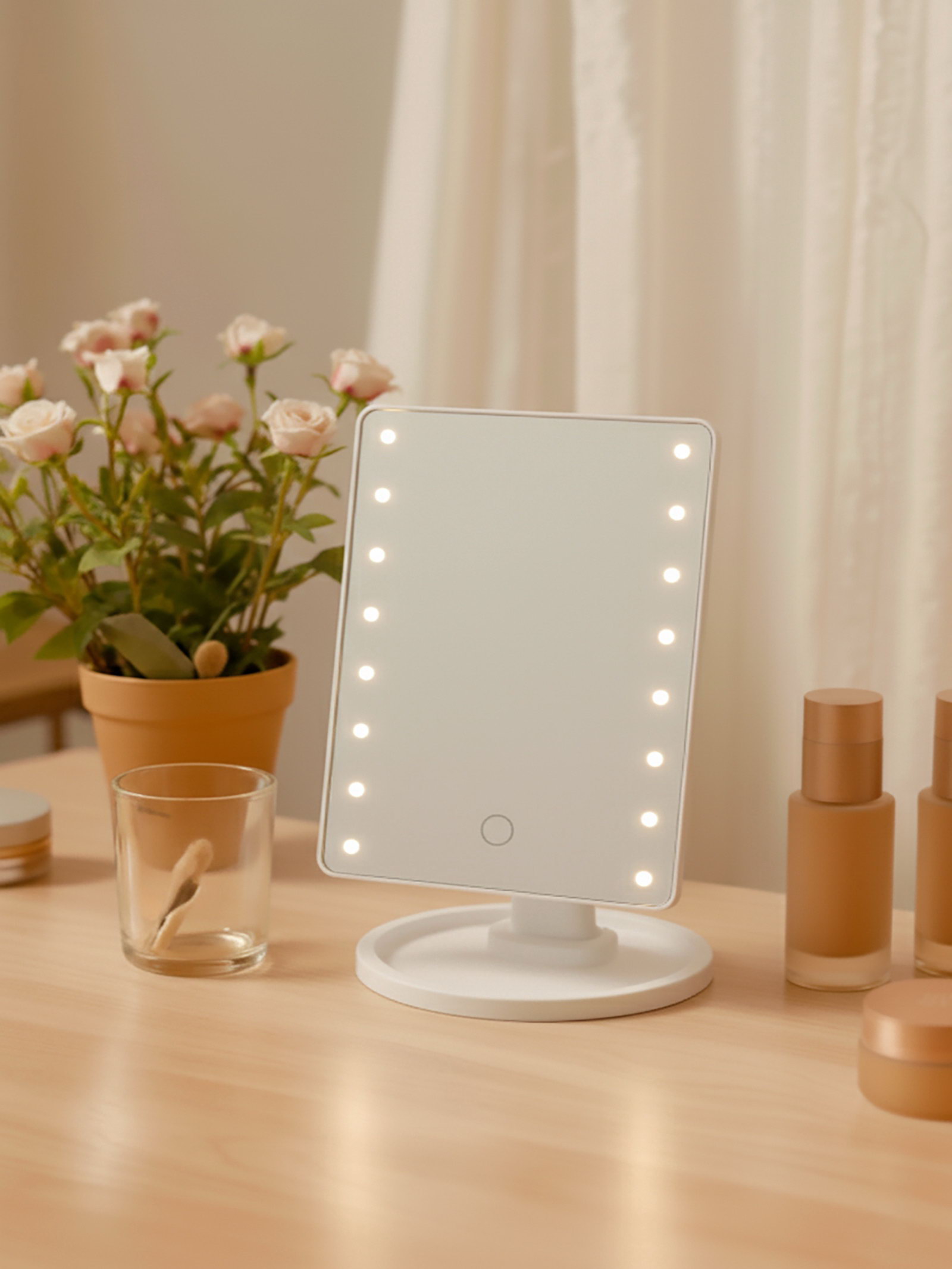 Размер упаковки: 18 x 7 x 27.5 см. tnved: 7009920000 Гарантийный срок, мес.: 6 Форма: Прямоугольная Материал зеркала: Стекло Вид зеркала: На подставке Тип питания: От батареек Особенность зеркала: С подсветкой Цвет: Белый Размер, см: 26.5 x 16 Материал корпуса: Пластик Количество зеркал: 1 Настольное зеркало формата 26,5 x 16 см с LED-подсветкой и сенсорной кнопкой станет стильным и функциональным дополнением к вашему утреннему или вечернему уходу. Белый корпус идеально впишется в светлый интерьер, а равномерное освещение от встроенных светодиодов делает макияж и прическу более аккуратными и комфортными. Материал корпуса пластик, а форма прямоугольная с устойчивой подставкой, что обеспечивает стабильное размещение на столе или туалетном столике. Это решение создано с вниманием к удобству: достаточно лёгкого касания сенсора, чтобы активировать мягкий свет и обеспечить идеальную видимость. | ||