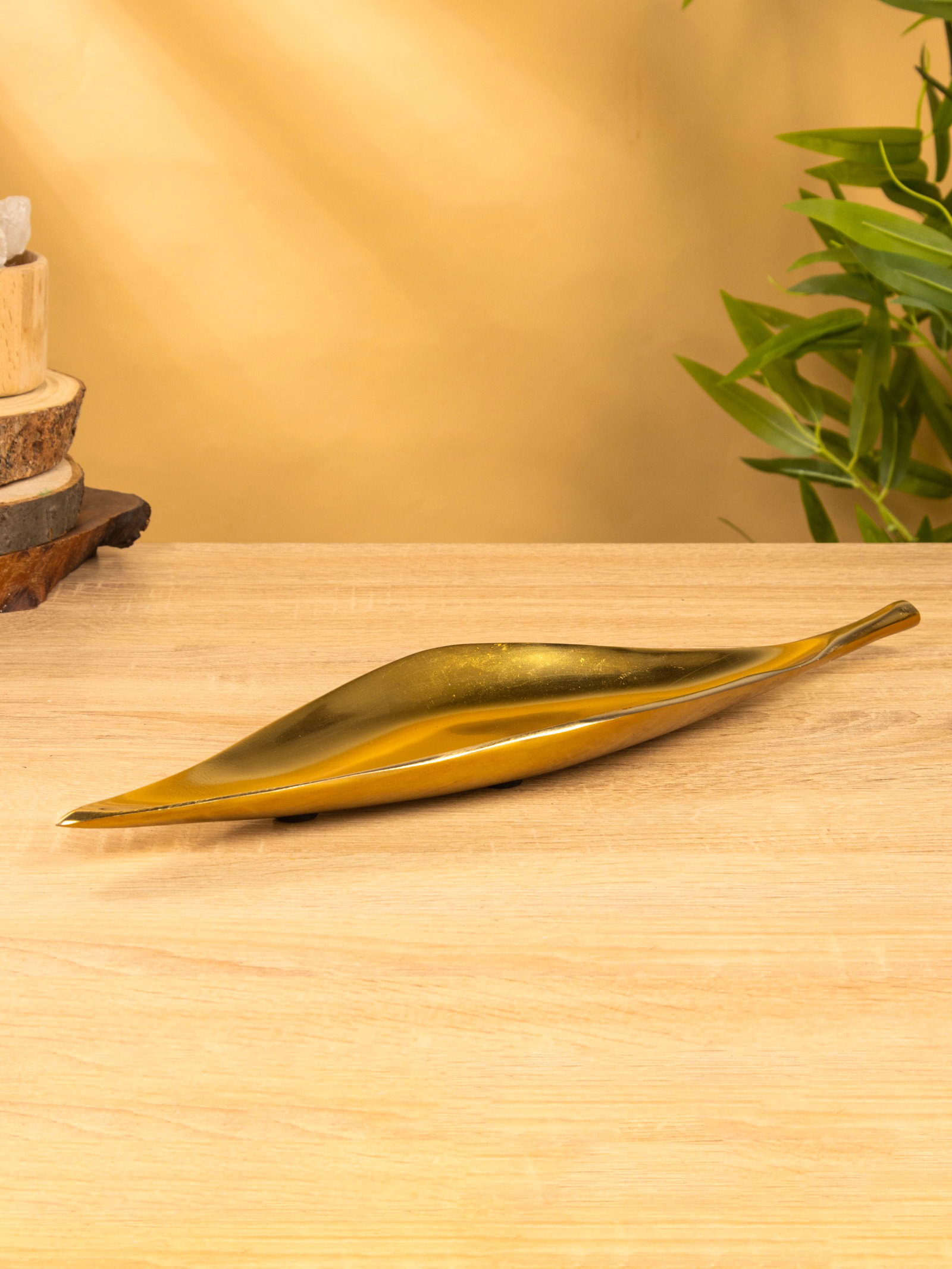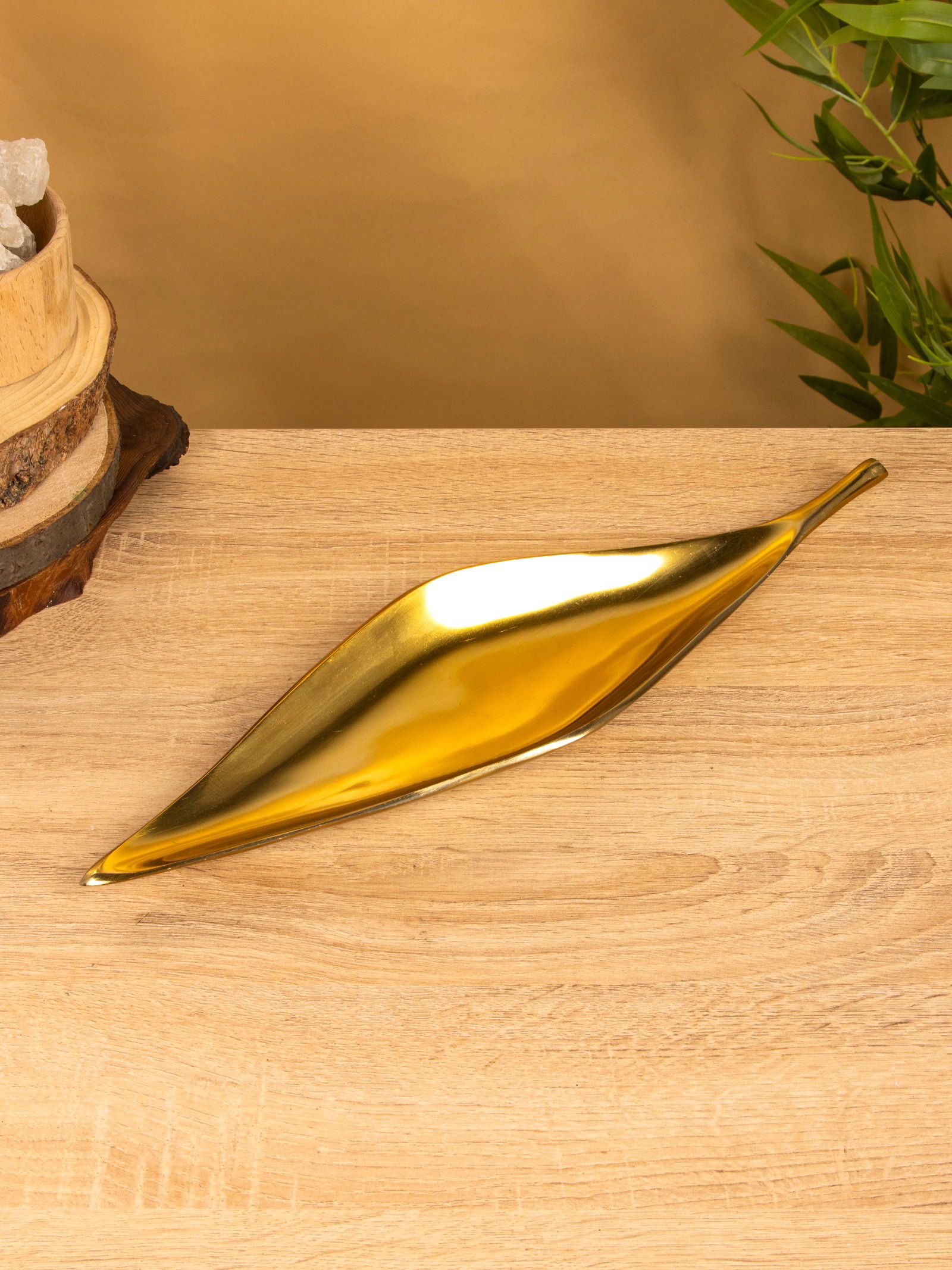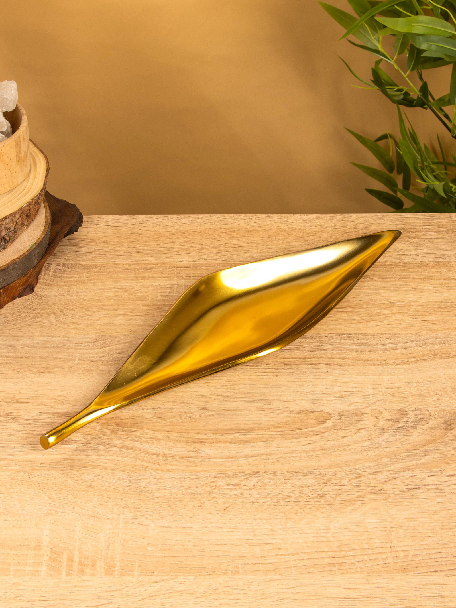 Блюдо "Лист" алюминий 40х11х3 см, 11x40x3 см., Индия