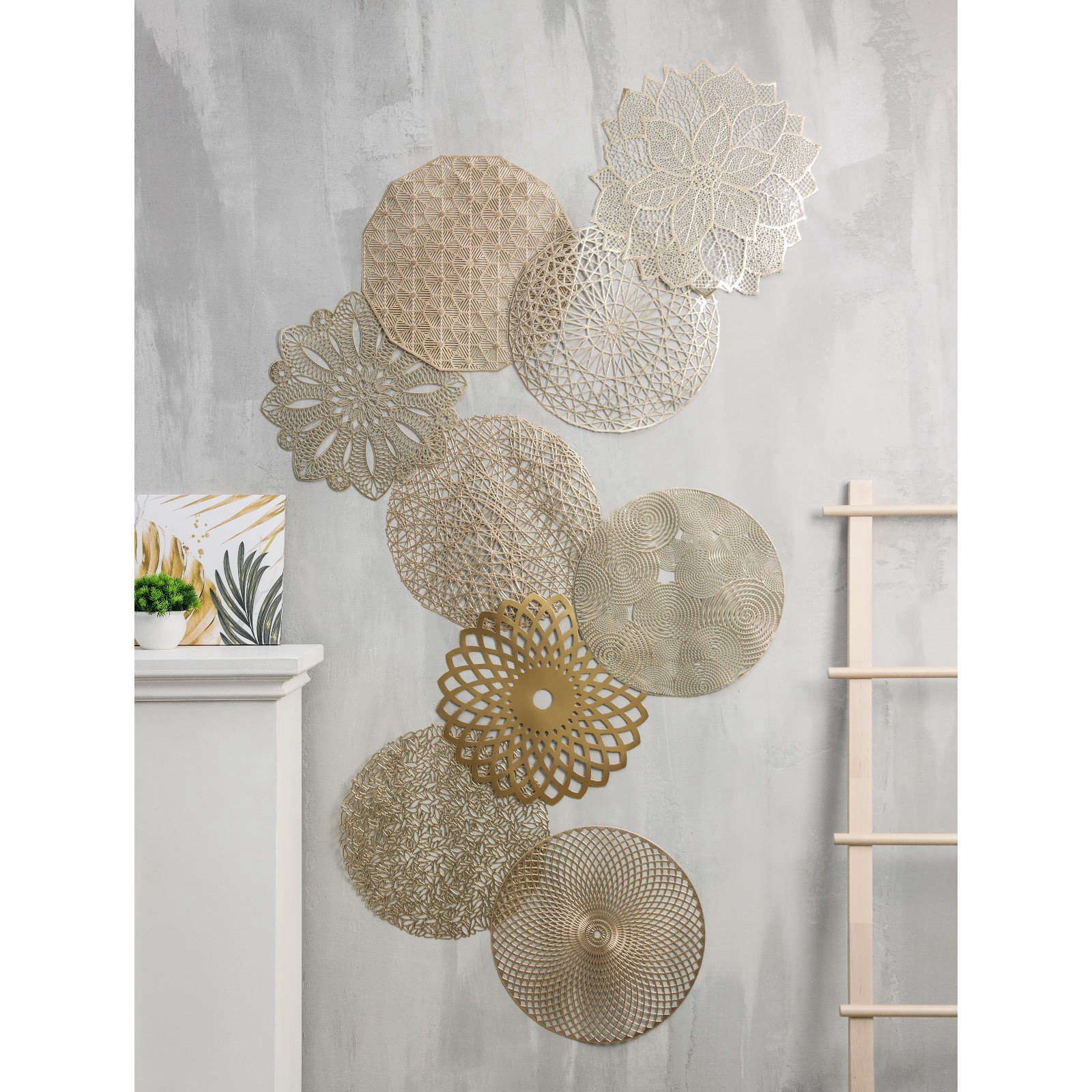 Салфетка сервировочная на стол "Цветок", d=38 см, золотая, 43x43x0.1 см., Доляна, Китай